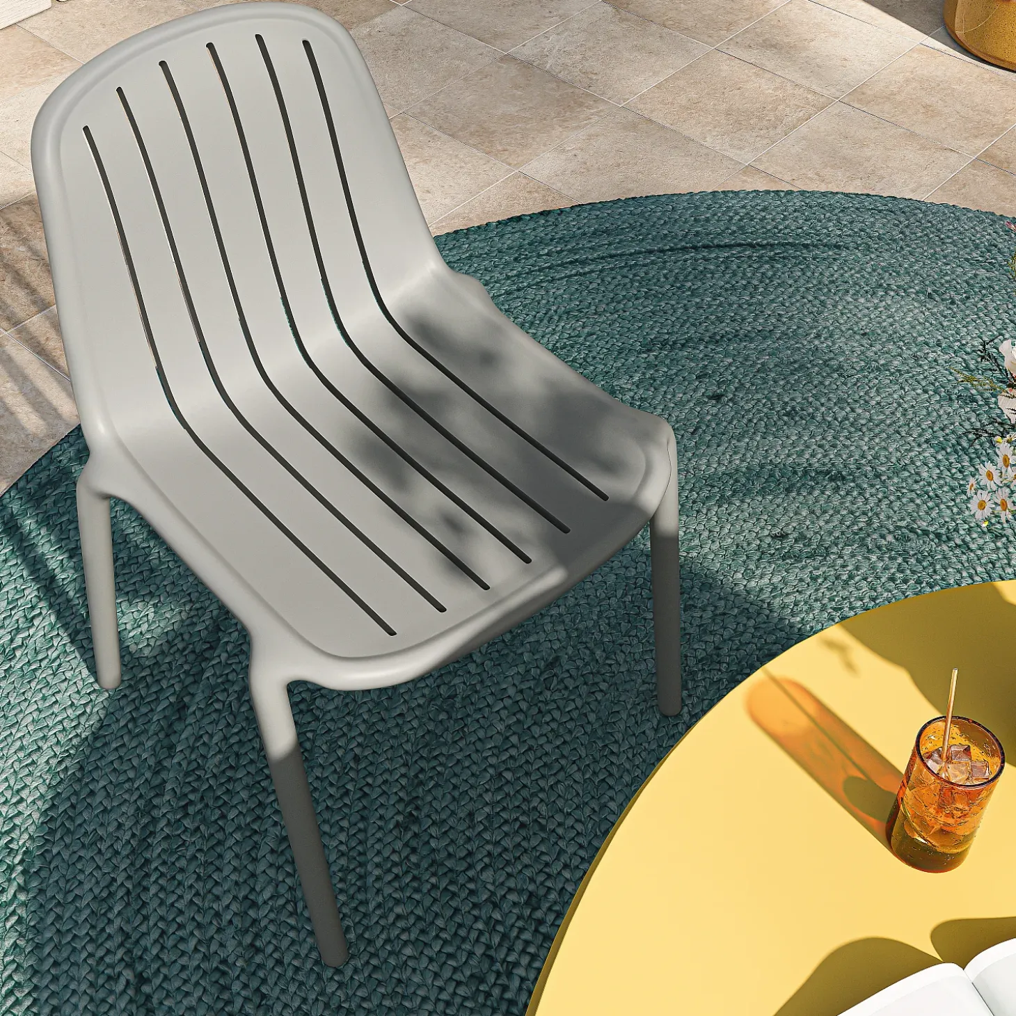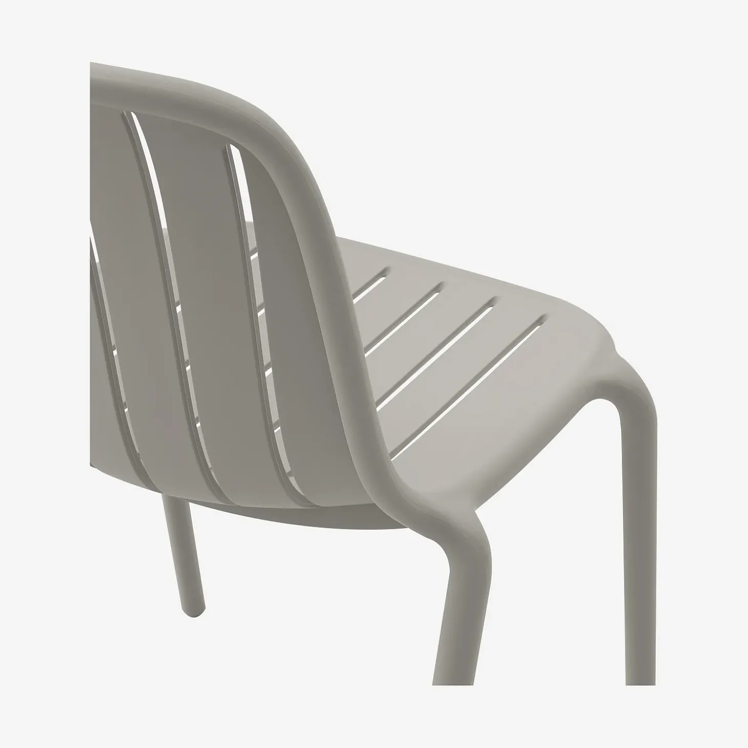 La chaise de jardin Arzon se décline en gris argile. Ce coloris discret apporte une subtile touche de chaleur. Pratiques et fonctionnelles, ces chaises sont empilables jusqu’à 4 unités pour un gain de place optimal.