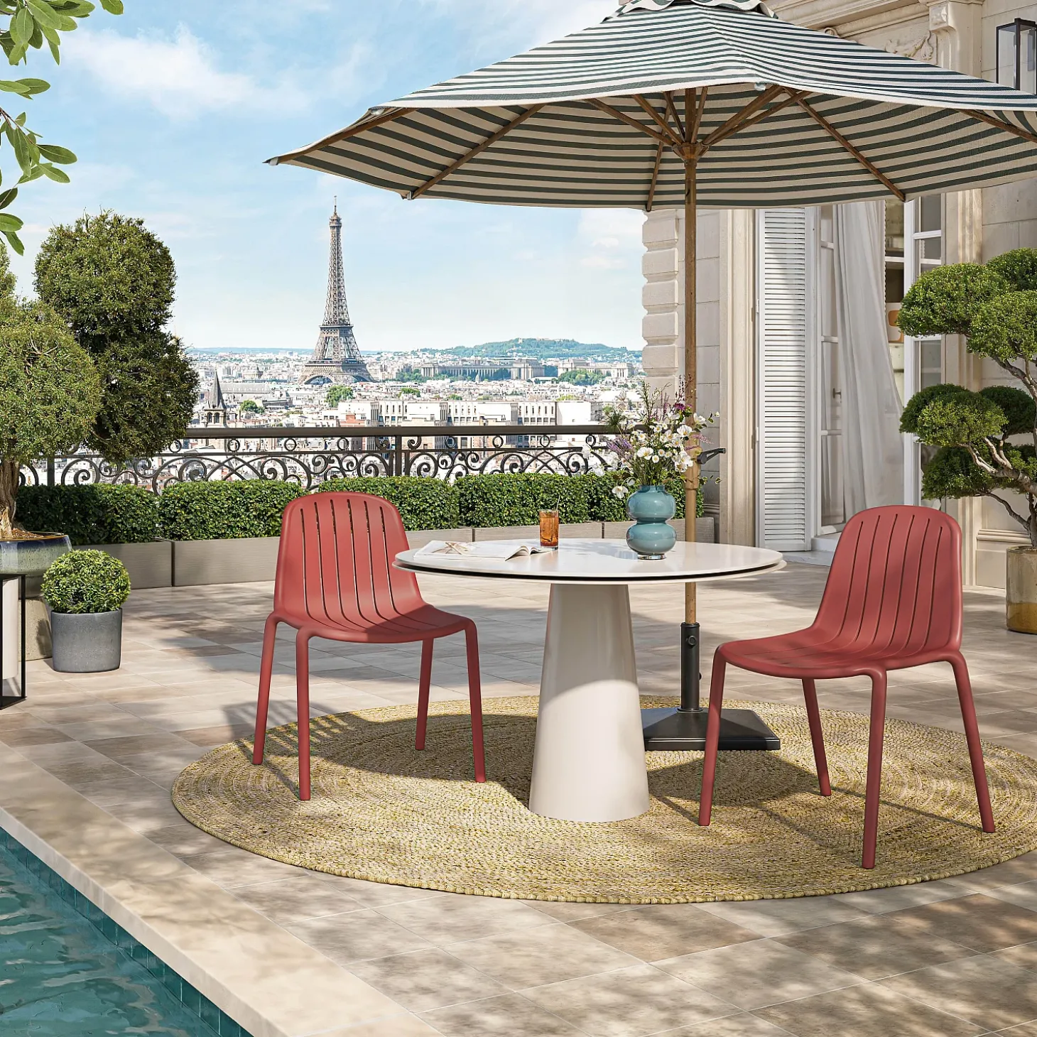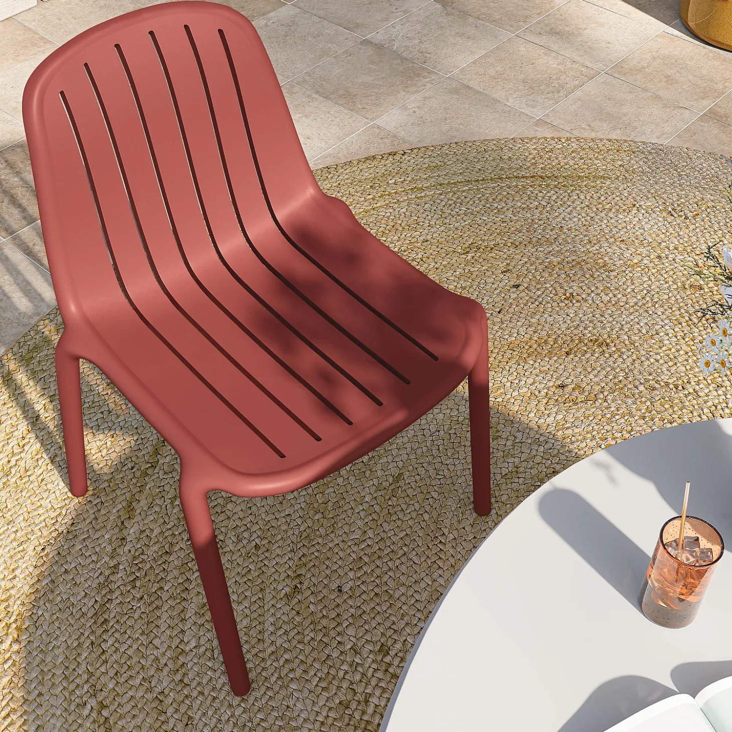 La chaise de jardin Arzon se décline en rouge parme. Ce coloris audacieux apporte une touche de couleur pop au jardin. Pratiques et fonctionnelles, ces chaises sont empilables jusqu’à 4 unités pour un gain de place optimal.