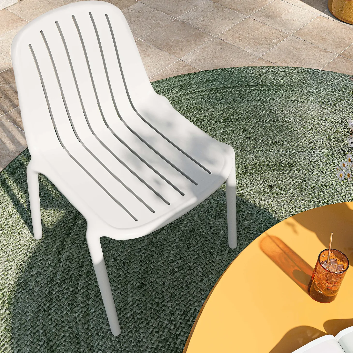 La chaise de jardin Arzon se décline en blanc opalin. Ce coloris intemporel traverse les saisons et s’accorde harmonieusement avec toutes les palettes de couleurs. Pratiques et fonctionnelles, ces chaises sont empilables jusqu’à 4 unités pour un gain de place optimal.