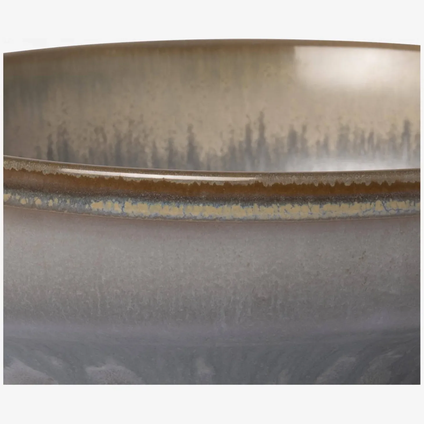 La vaisselle Asta est en grès bleu sur lequel a été apposé un émail réactif pour un rendu sensible. Lors de la phase de cuisson, les différents émaux réagissent entre eux pour créer des nuances subtiles de gris, de vert et de marron. Chaque assiette ou chaque plat de cette gamme est unique. Avec des nuances à chaque fois différentes, cette vaisselle rend votre table plus vivante.