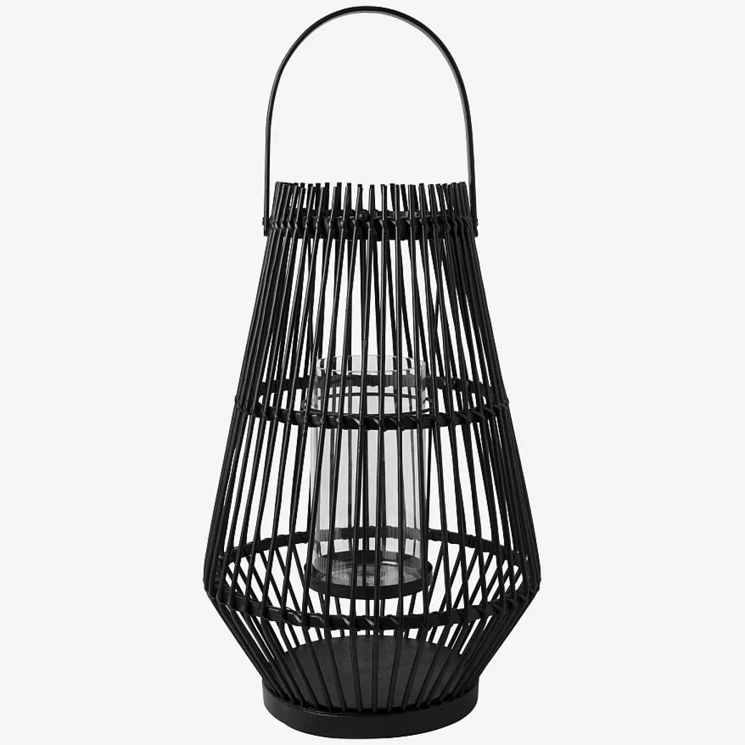 Cette lanterne en bambou de 26×40 cm contient en son centre un support en verre dont les dimensions conviennent aux bougies cylindriques de la gamme <dynamiclink target=
