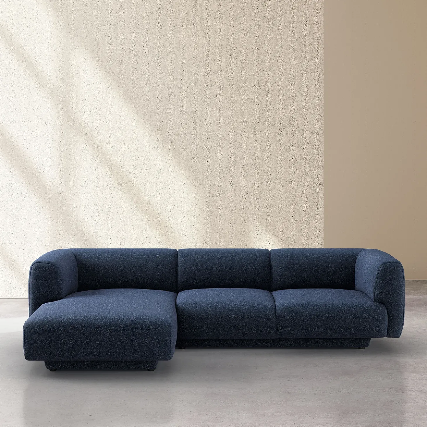 Conçu pour valoriser les espaces généreux, le grand canapé d’angle gauche Austin en tissu texturé bleu marine plonge la pièce dans une atmosphère chaleureuse. Son revêtement travaillé donne du relief à sa teinte profonde et sophistiquée.