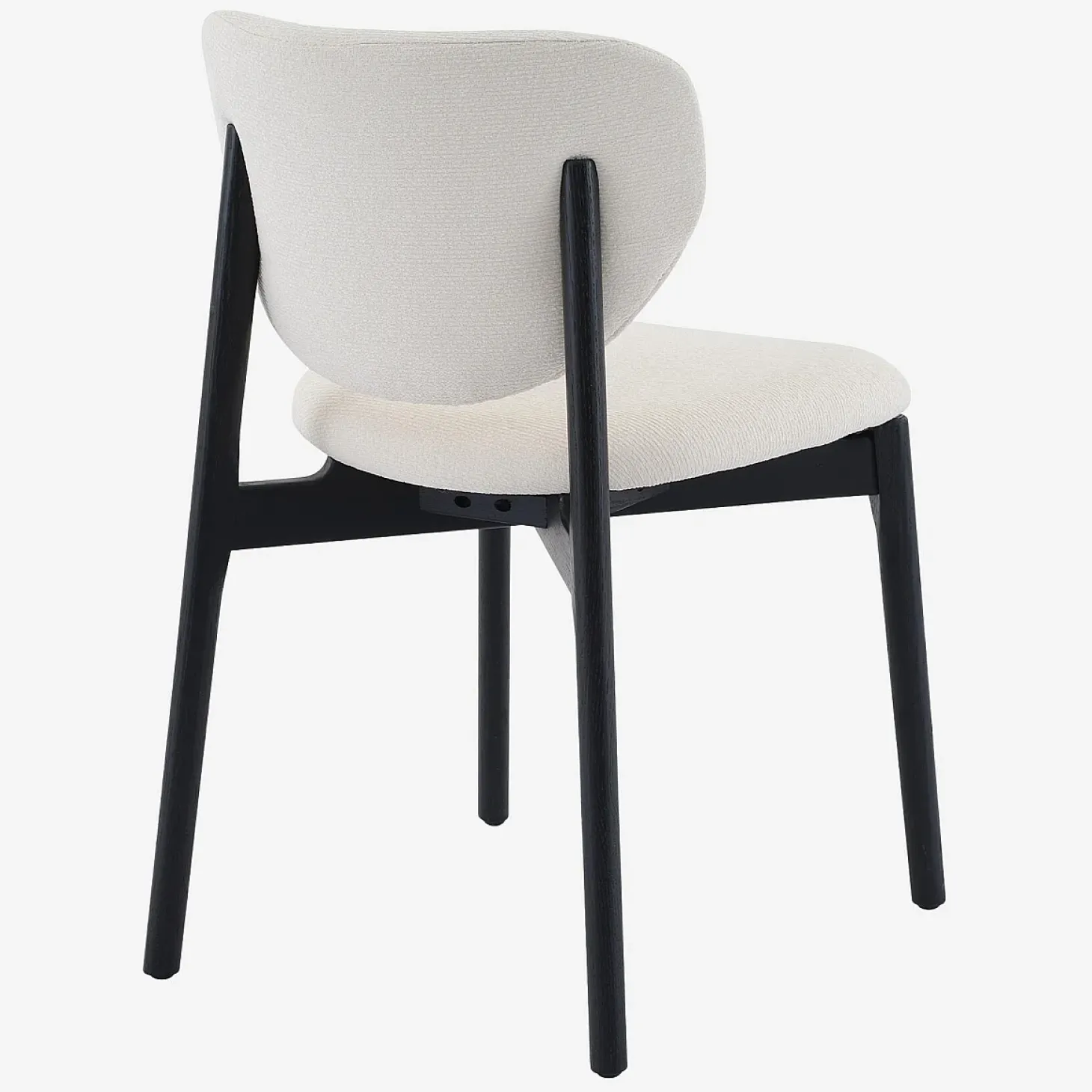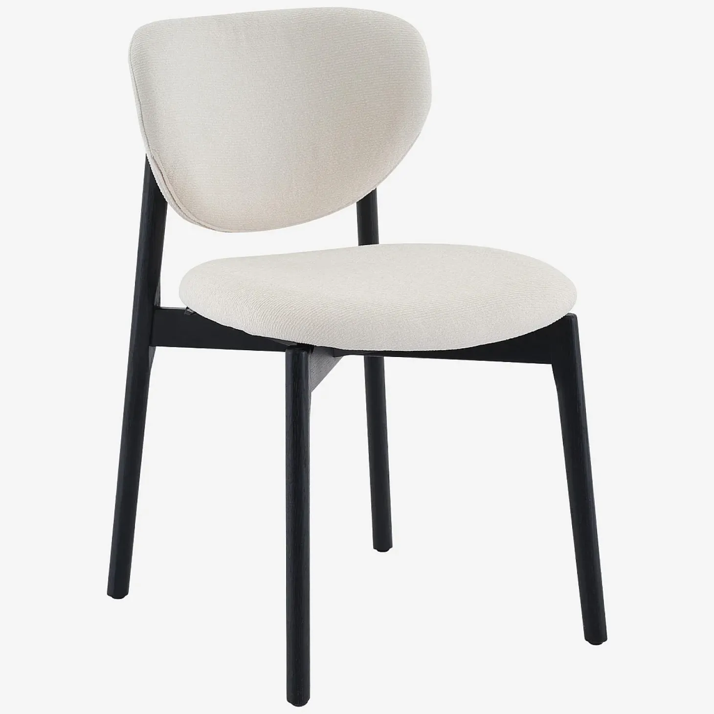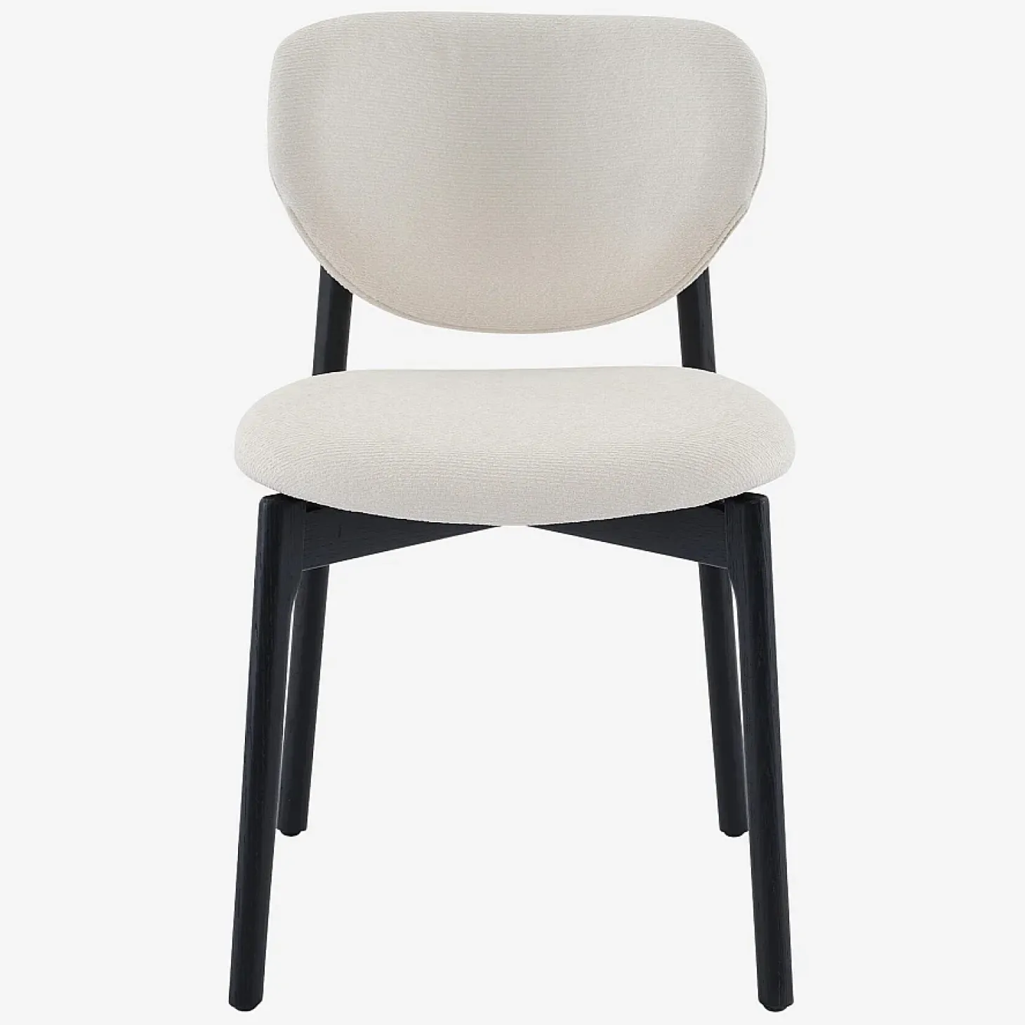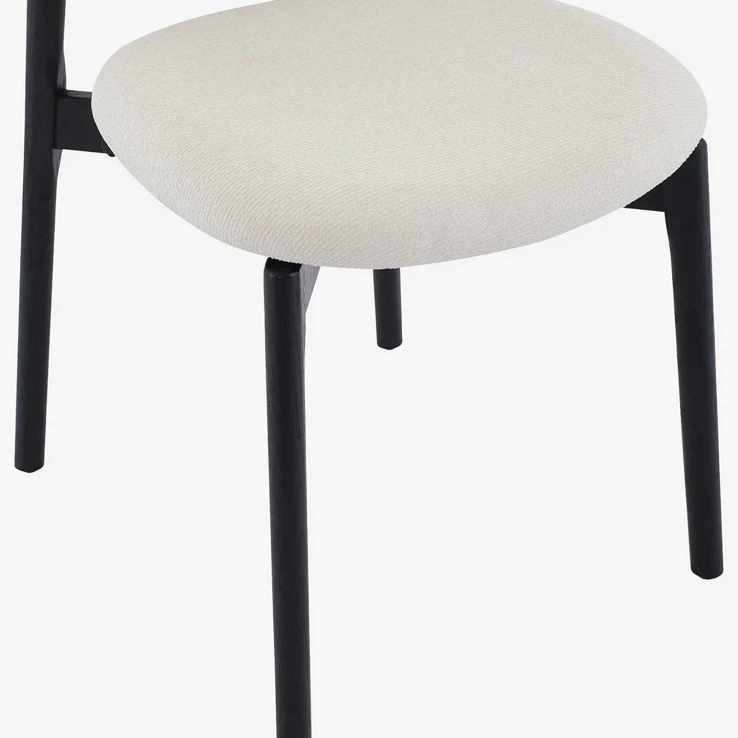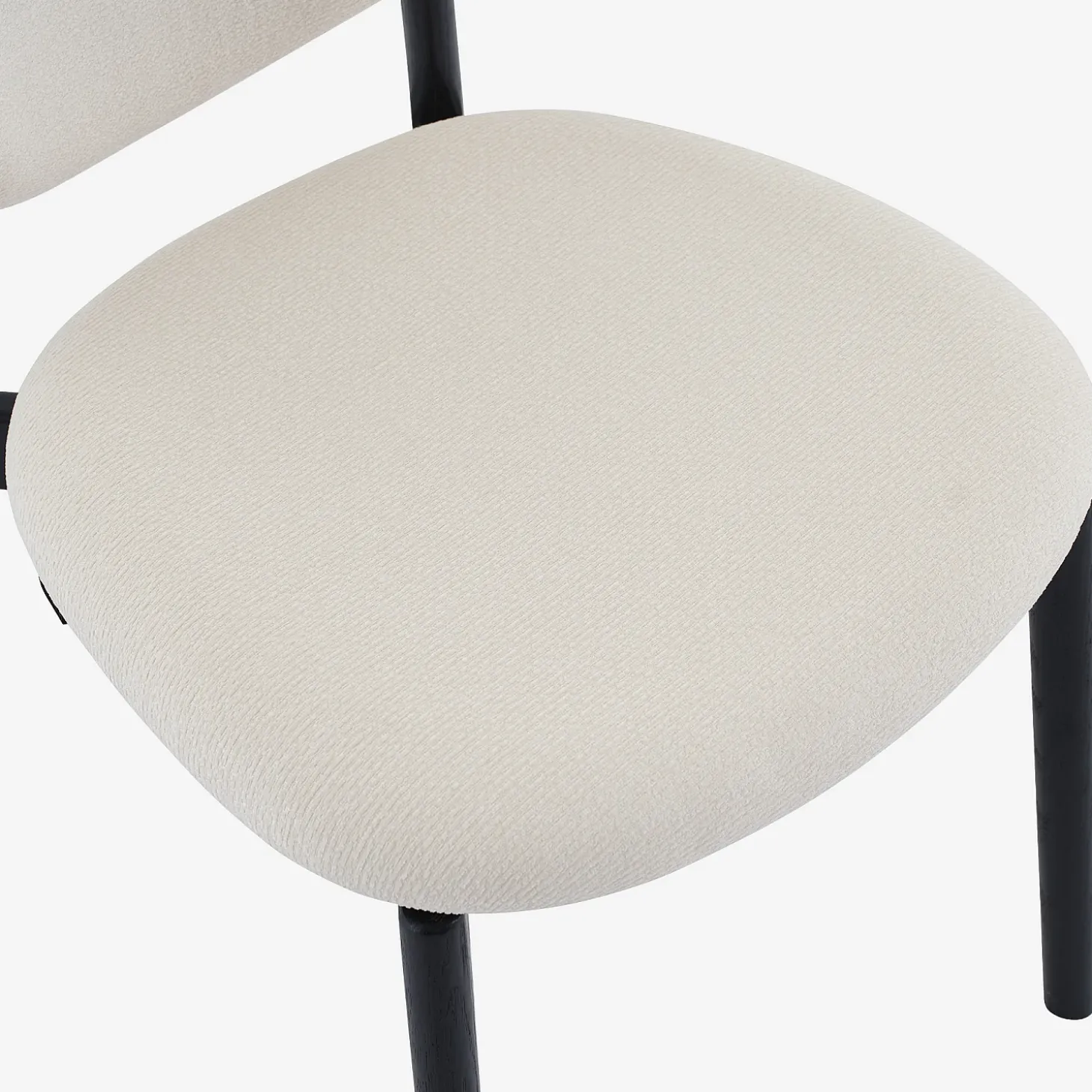 Habillées d’un tissu écru texturé, elles se distinguent par une teinte lumineuse et un toucher agréable, qui apportent à la pièce chaleur et simplicité. Le contraste entre l’assise claire et le piètement foncé crée un équilibre visuel fort, idéal pour structurer un intérieur moderne ou plus éclectique.
