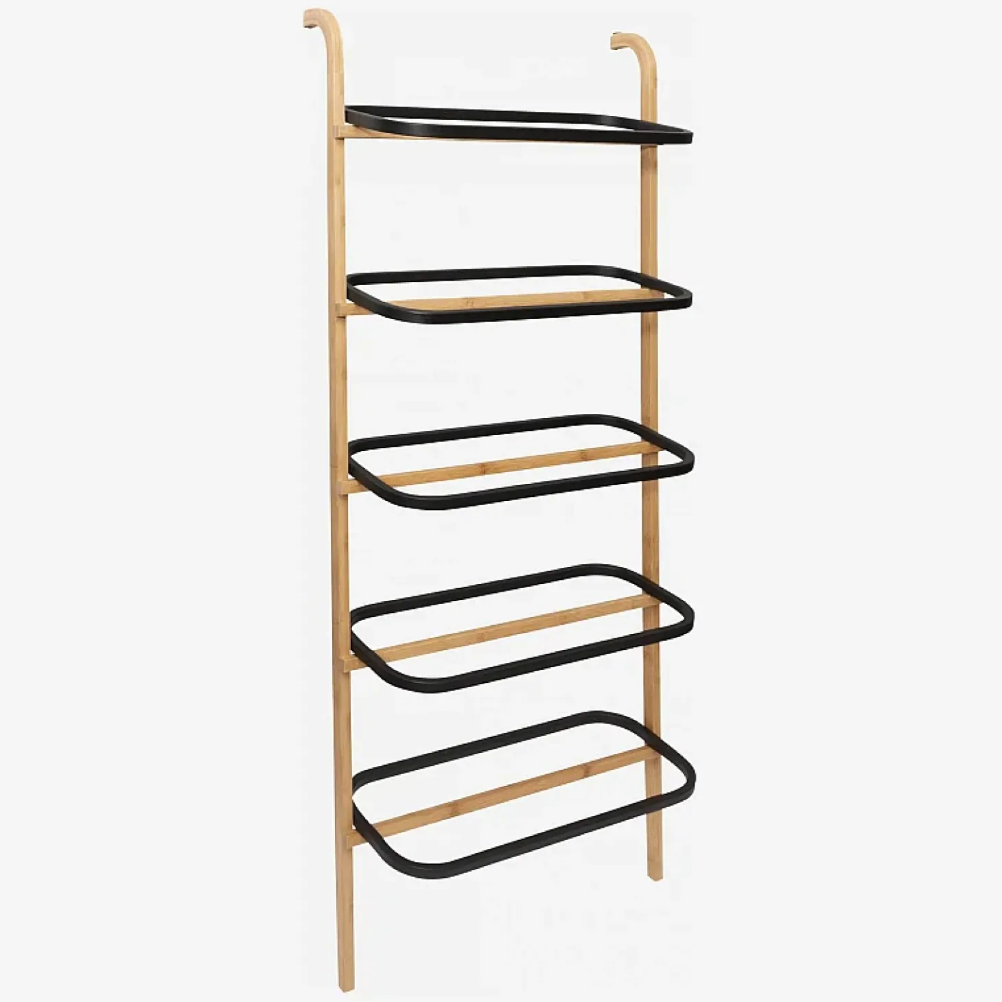 En bambou et métalBarnabé associe bambou naturel et étagères métalliques dans un porte-chaussures suspendu compact. Une solution astucieuse pour ranger jusqu’à 15 paires tout en libérant de l’espace au sol.