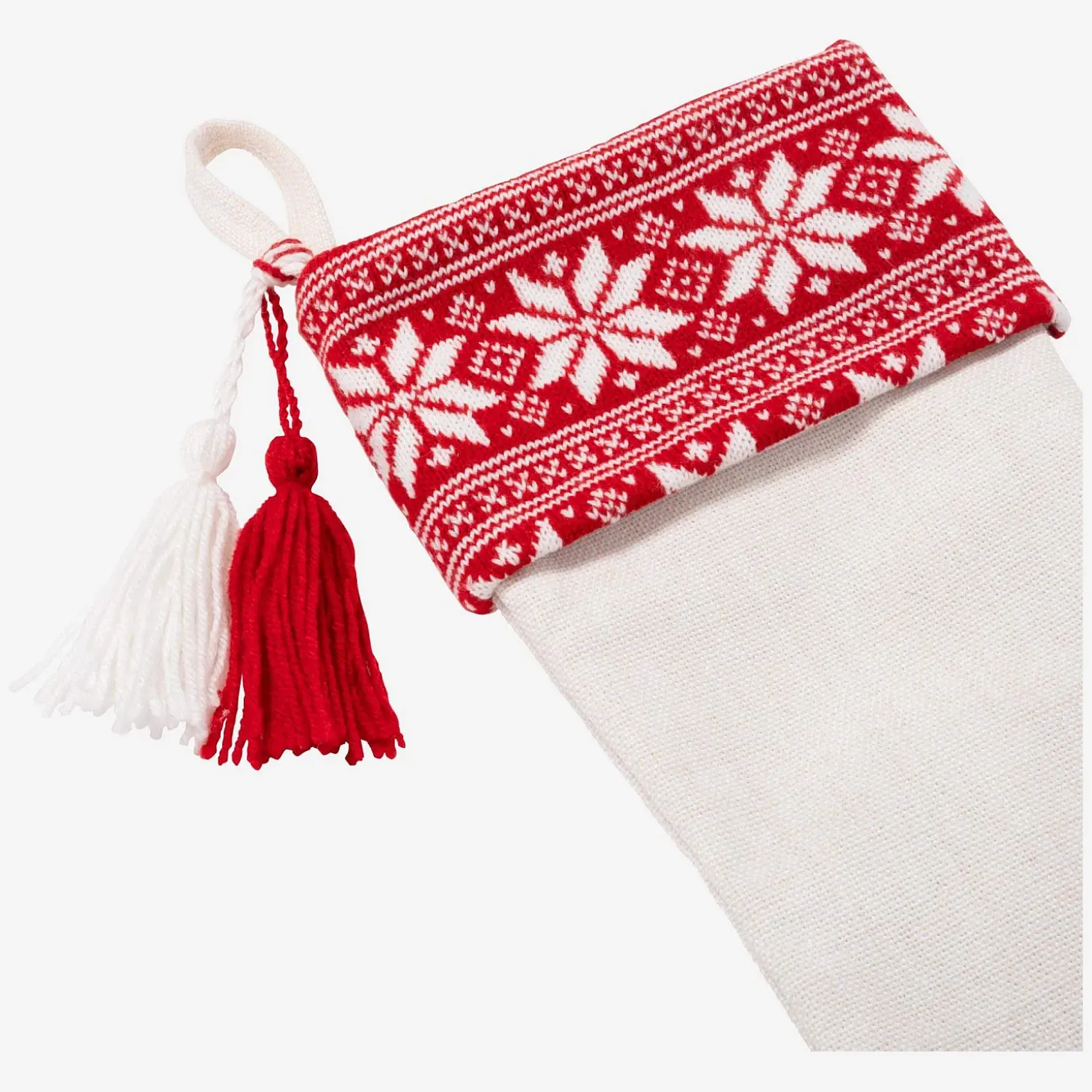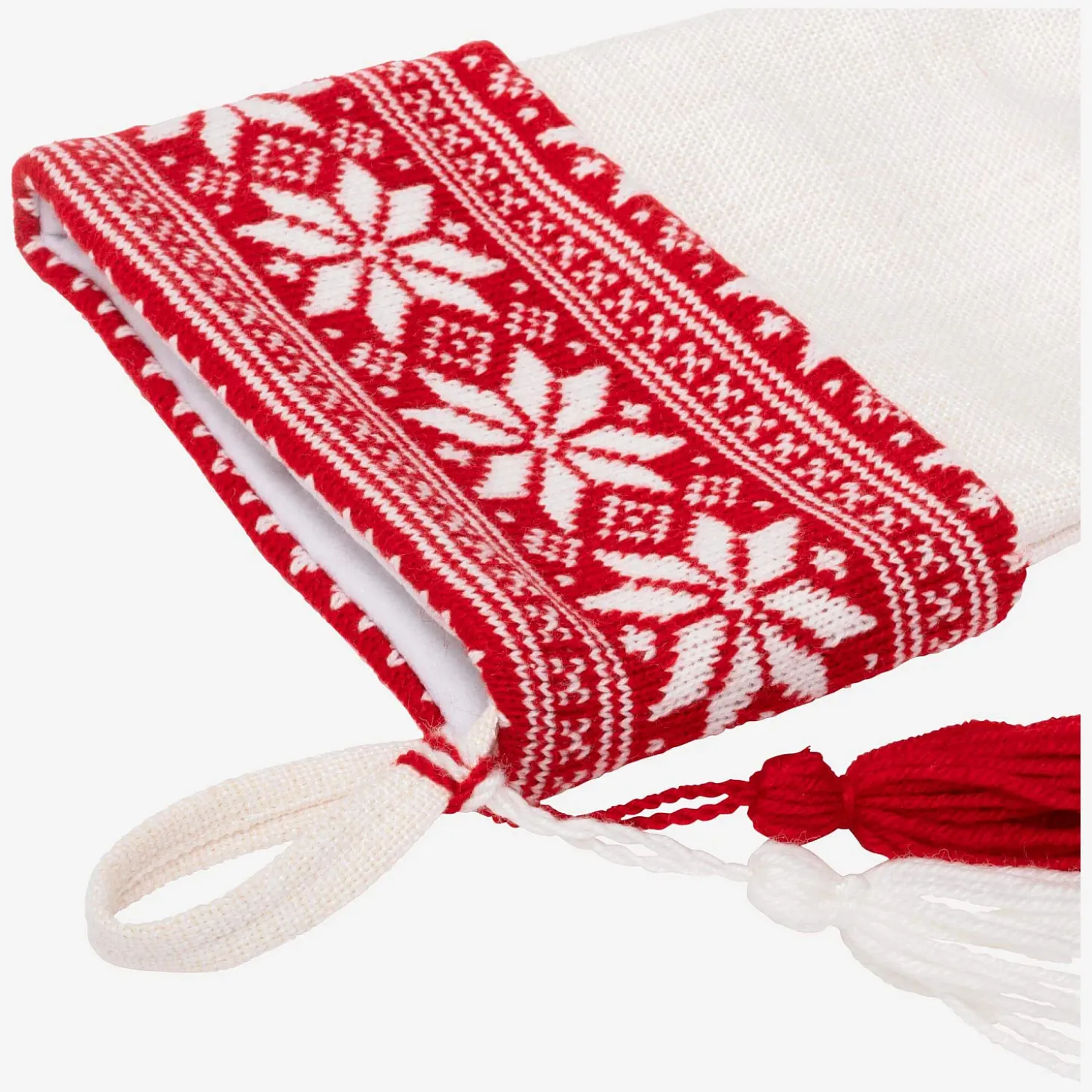 La chaussette tricotée Barou blanche et rouge, vendue par lot de 12, décore les espaces à Noël avec vivacité pour passer des fêtes dans un univers chaleureux.