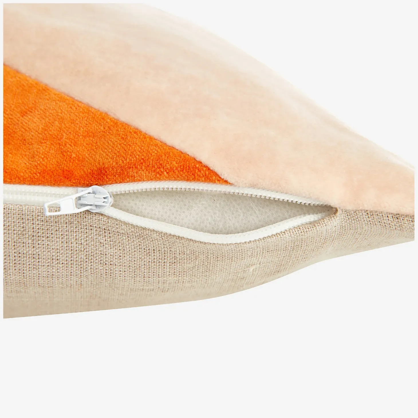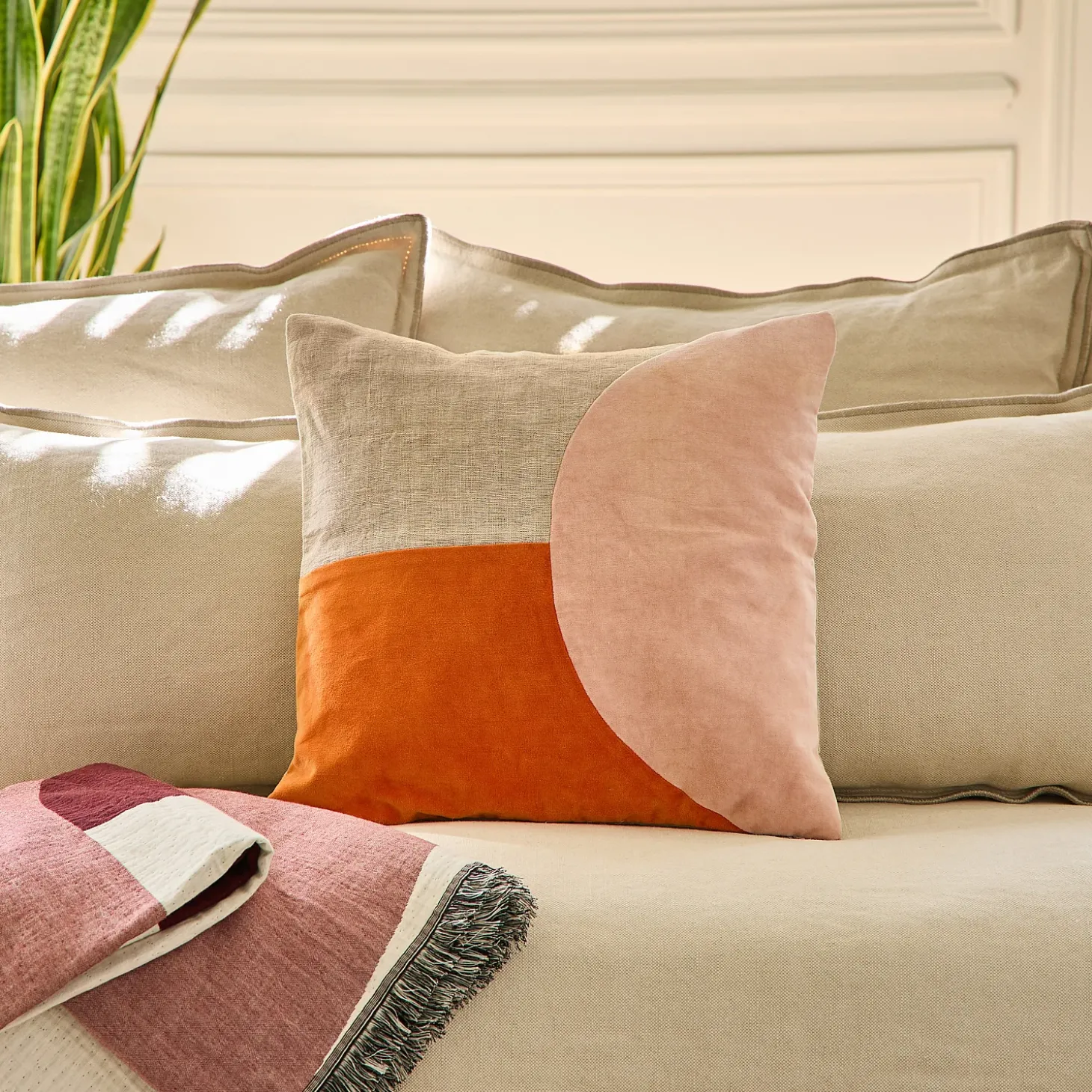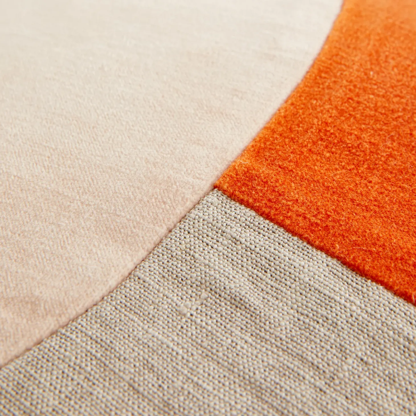 Les teintes soigneusement choisies, orange vibrant, rose pâle poudré et écru naturel, s’entrelacent avec légèreté, apportant à l’ensemble une élégance moderne et chaleureuse.