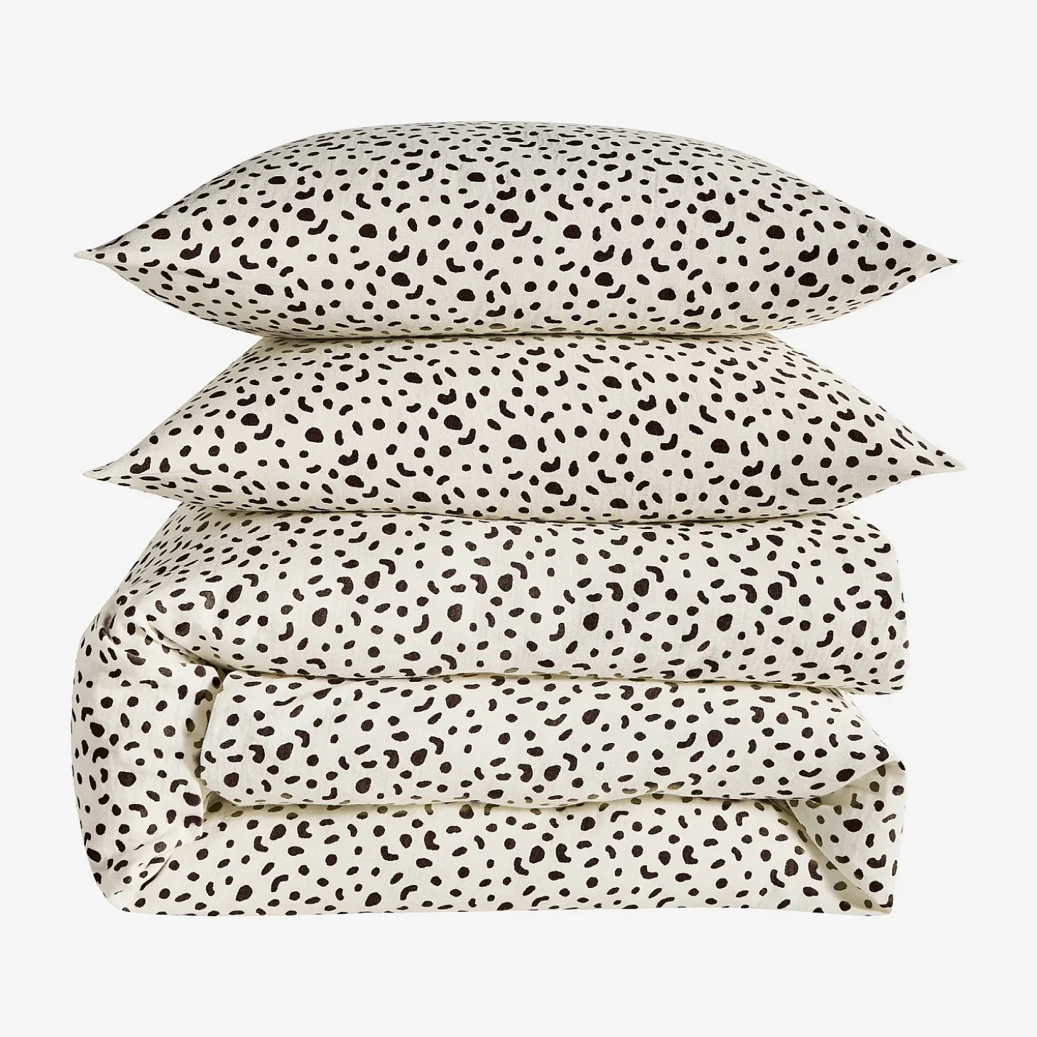 La parure de lit Briac 240 x 220 cm arbore un motif à pois avec une touche de modernité.
