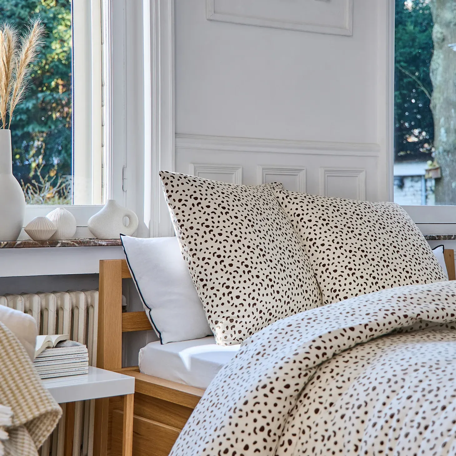 Conseils d’entretien : lavable en machine à 60°La parure de lit Briac joue sur la légèreté de la double gaze de coton et un motif à pois revisité pour créer une atmosphère douce et contemporaine. Un équilibre subtil entre modernité, confort et délicatesse.