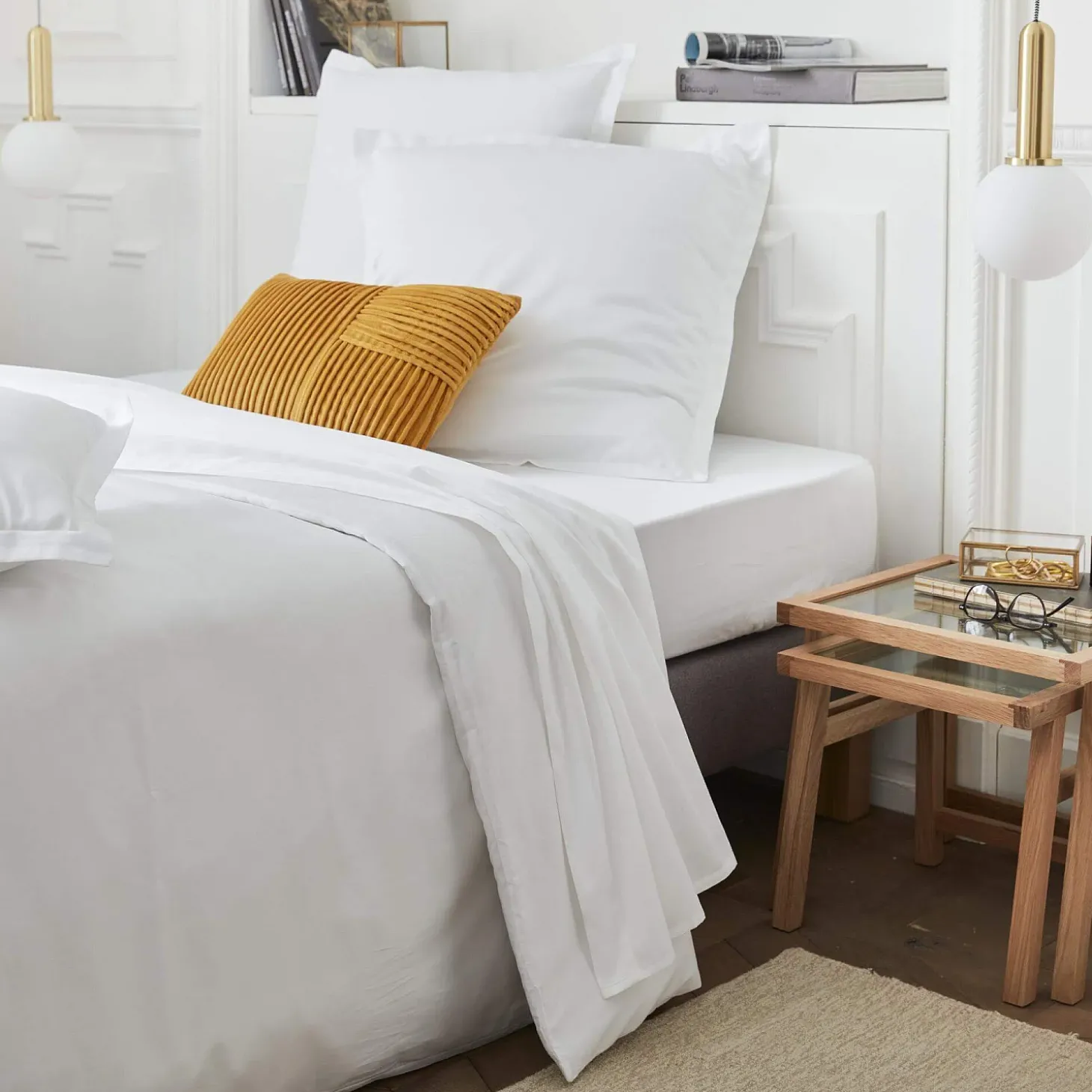 Le drap housse Bright Sateen 180 x 200 cm blanc est en 100% satin de coton. De conception portugaise, il est tissé avec 120 fils par centimètre carré, ce qui assure une grande qualité du satin.