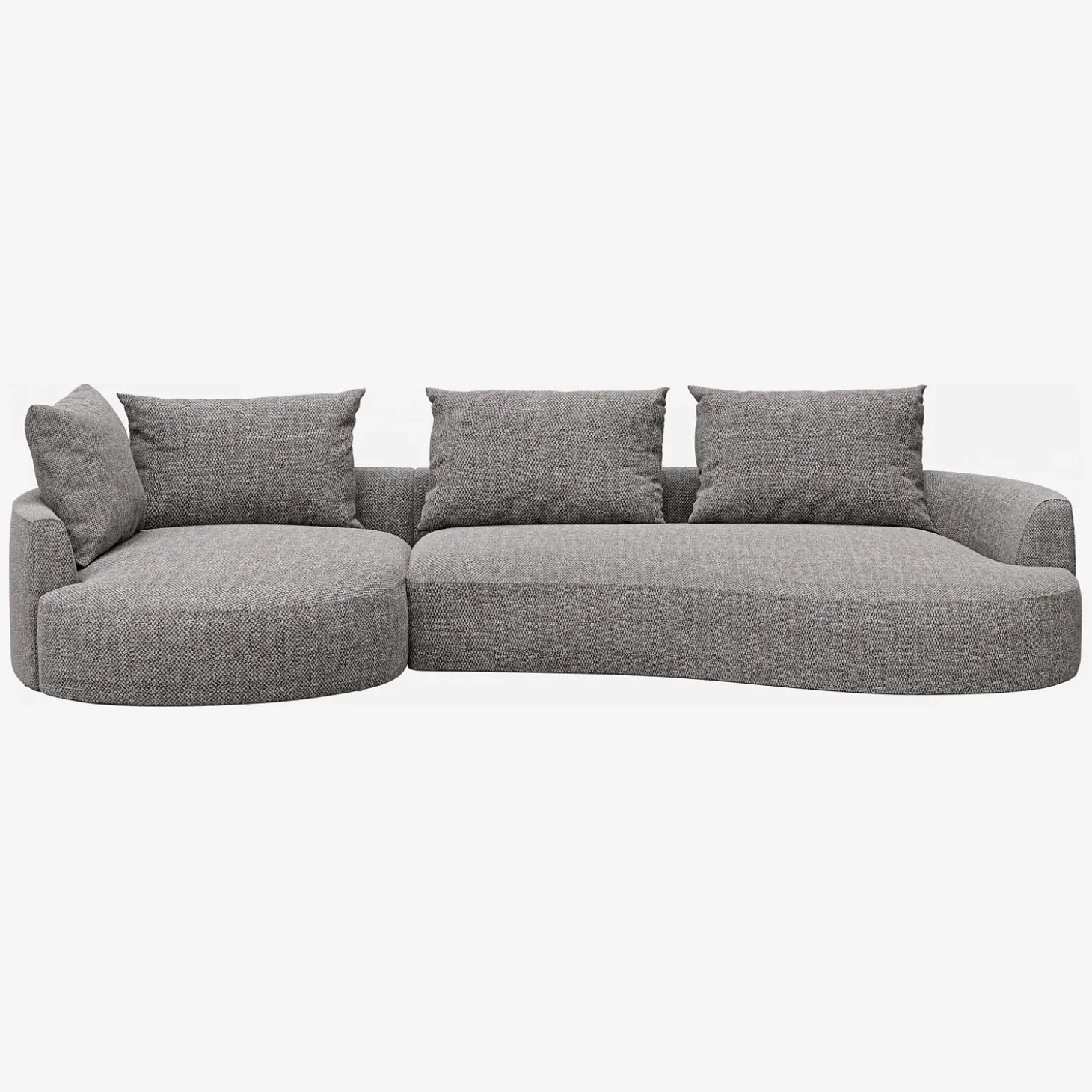 Le canapé d’angle gauche Cagliari de forme organique en tissu Bellagio gris nocturne se compose de deux blocs. Sa profondeur d’assise de 60 cm est une invitation au cocooning. Ses coussins de dossier sont en plumes et mousse pour vous offrir un moelleux confortable et relaxant. Ce canapé existe également dans une version <dynamiclink target=