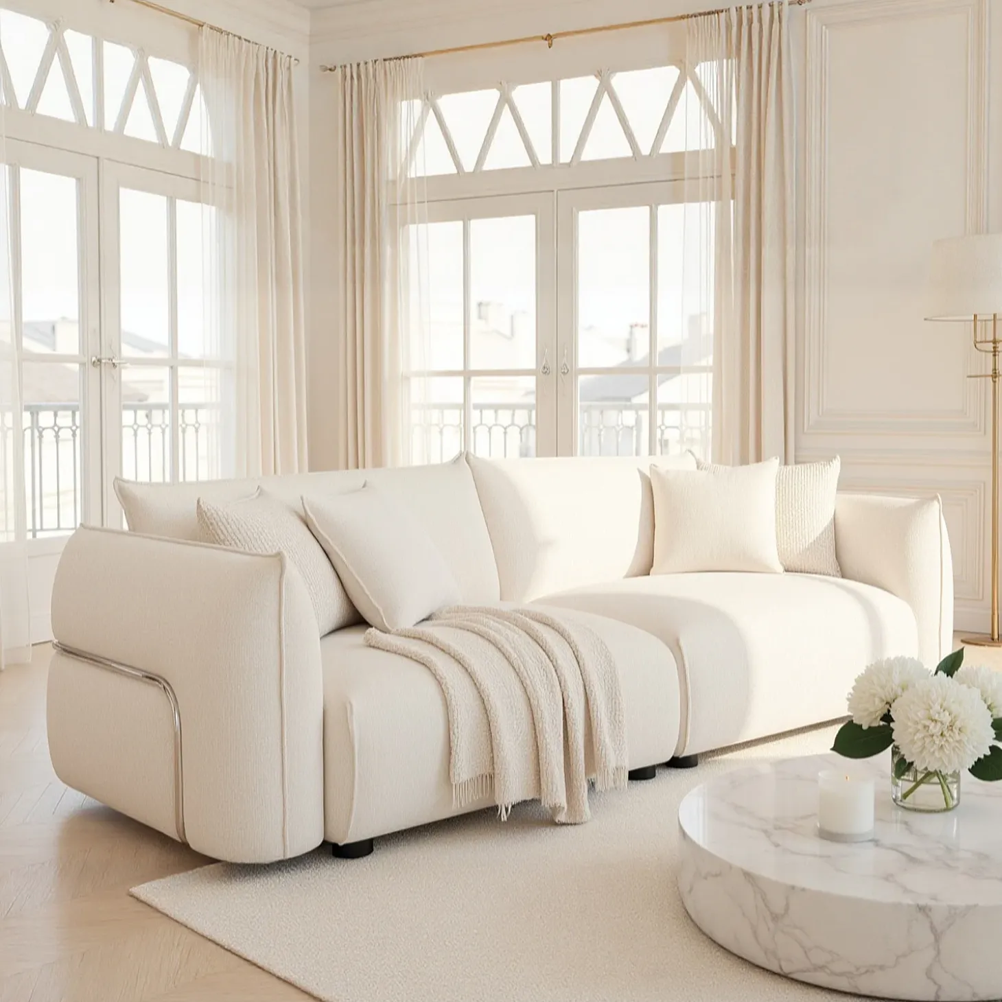 Système de fixation : crochets métalliques situées sur les modules permettant de les solidariser et de maintenir l’ensemble fermementTissu texturé, lignes épurées et assise spacieuse font de Céleste une pièce phare du salon. Une création qui sublime naturellement les intérieurs contemporains.