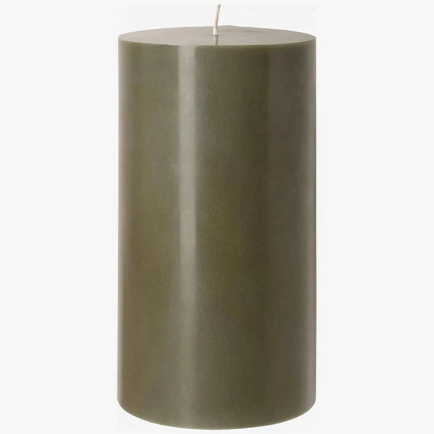 La bougie cylindrique Colors de couleur kaki mesure 10,5 cm de diamètre et 20 cm de hauteur.
