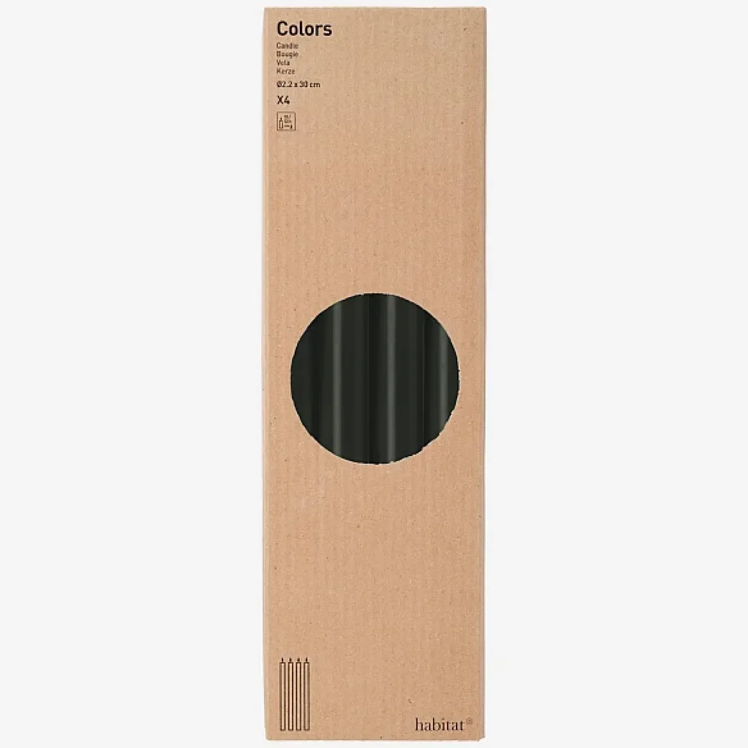 Les bougies cierges Colors de couleur gris foncé font 30 cm de hauteur. Elles sont disponibles en lot de 4.