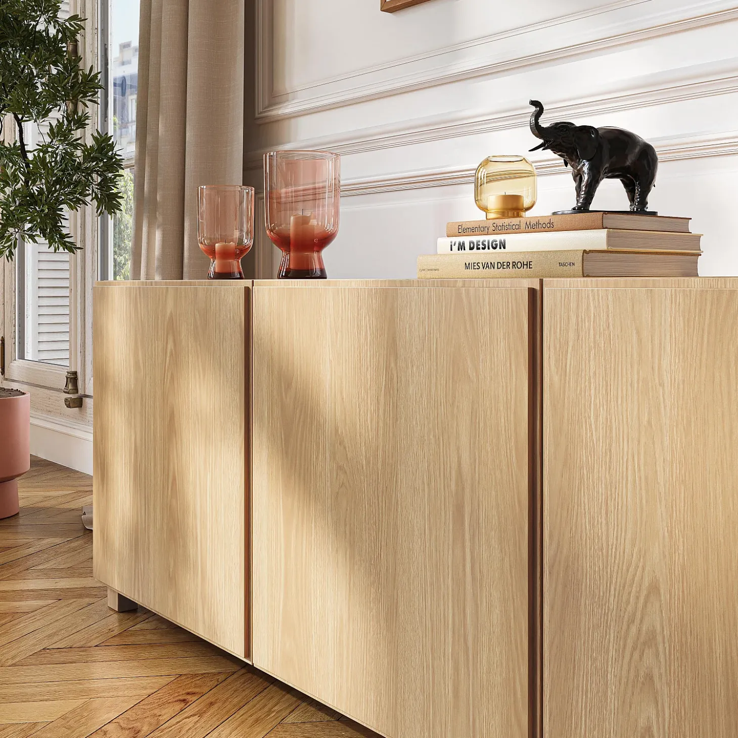 Le buffet bas Drio est un rangement essentiel, à la fois structuré, chaleureux et naturellement intemporel.