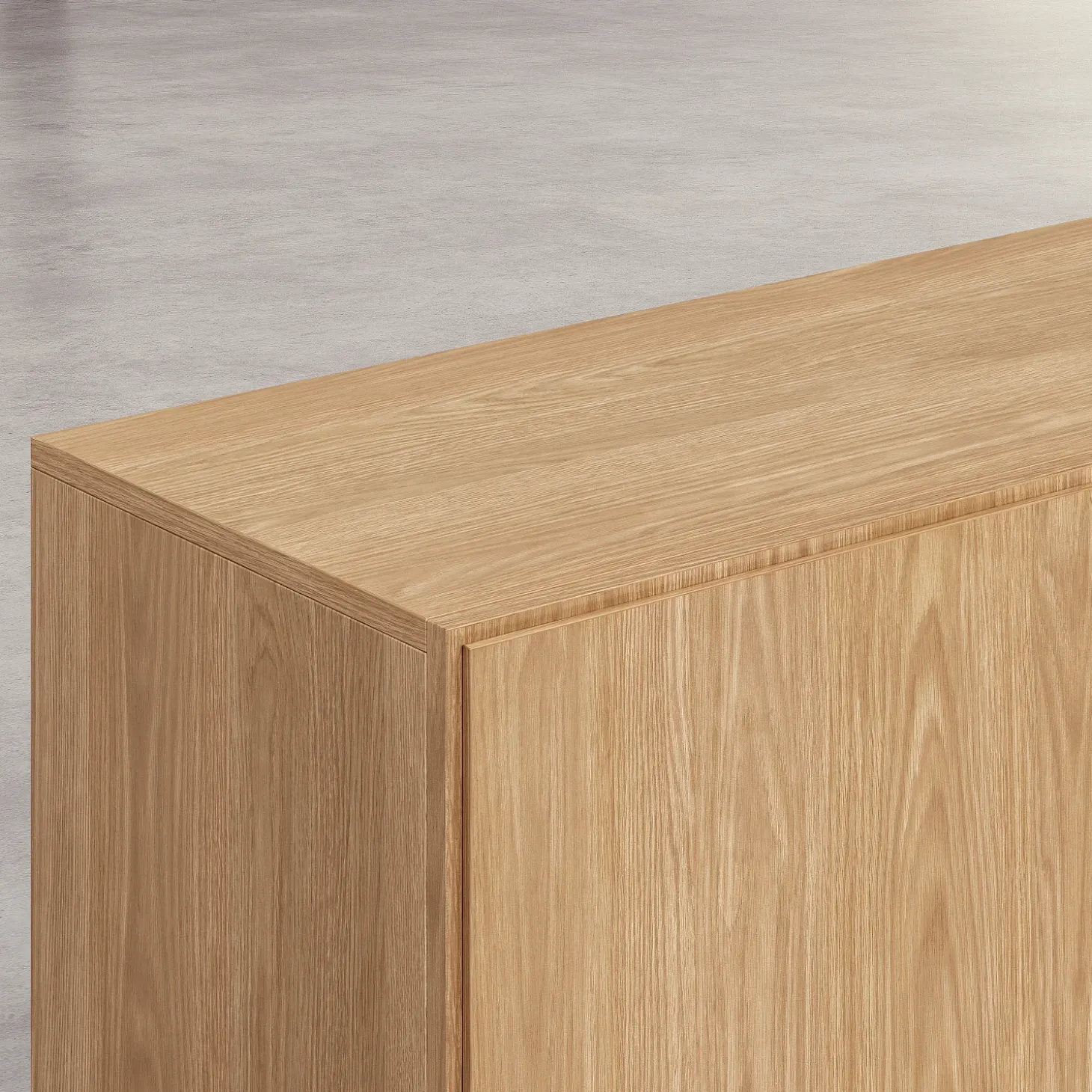 Sa finition en chêne naturel révèle des nuances authentiques et une teinte douce, qui réchauffe l’espace avec subtilité.