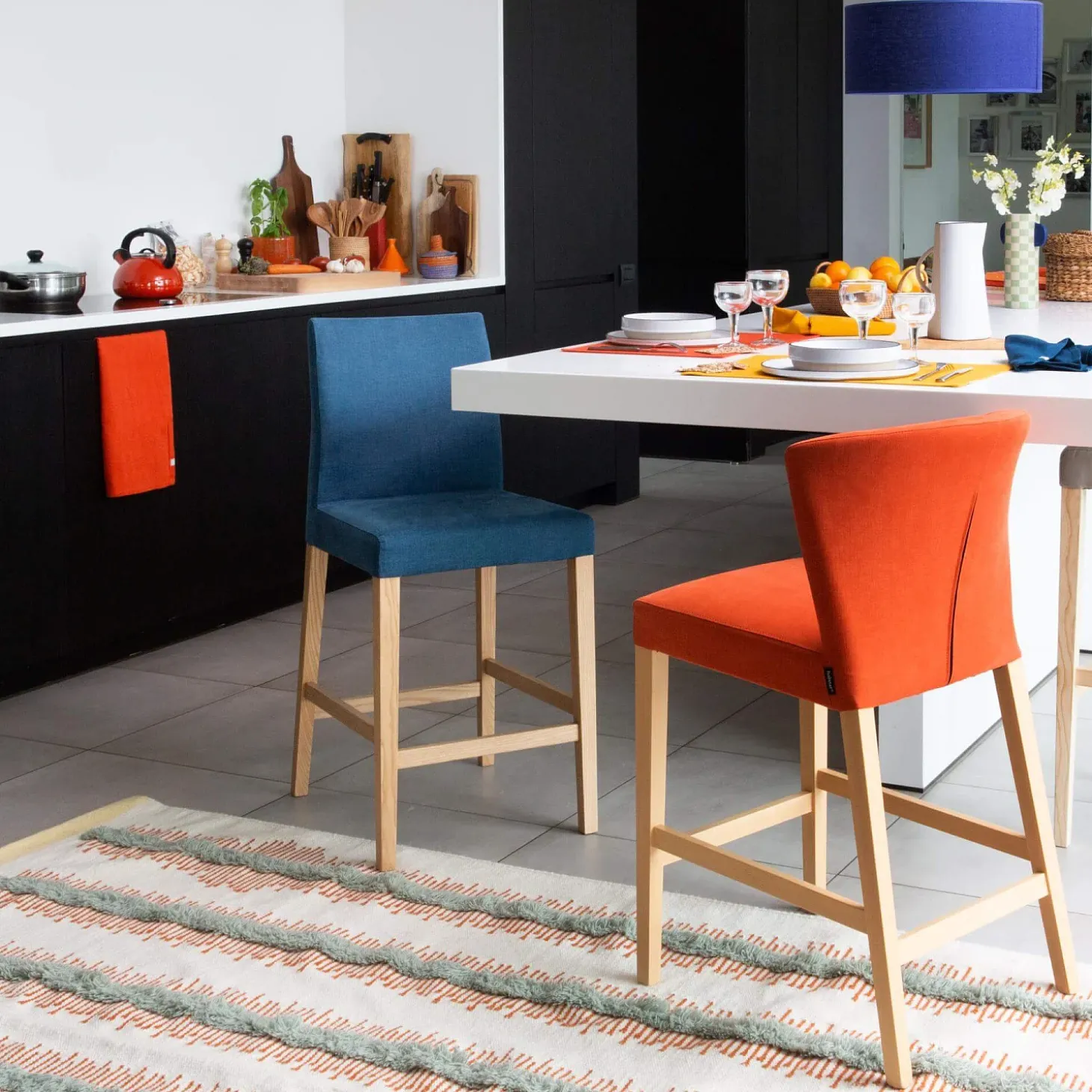 La chaise Eleonora prend plusieurs centimètres et se décline maintenant en chaise de bar. Fabriquée en Italie, elle adopte un design à la fois sobre et élégant qui lui permet de se glisser dans tous les intérieurs. Cette chaise tapissée possède un dossier légèrement incliné et une assise rembourrée pour vous offrir plus de confort.
