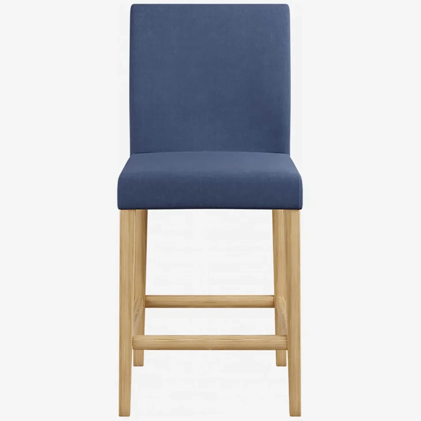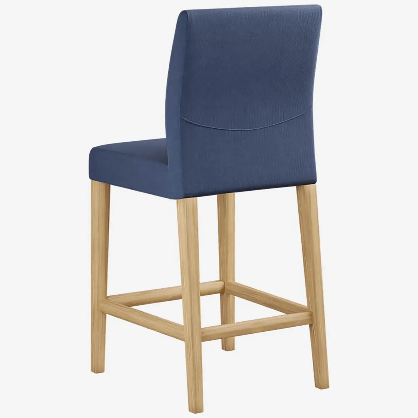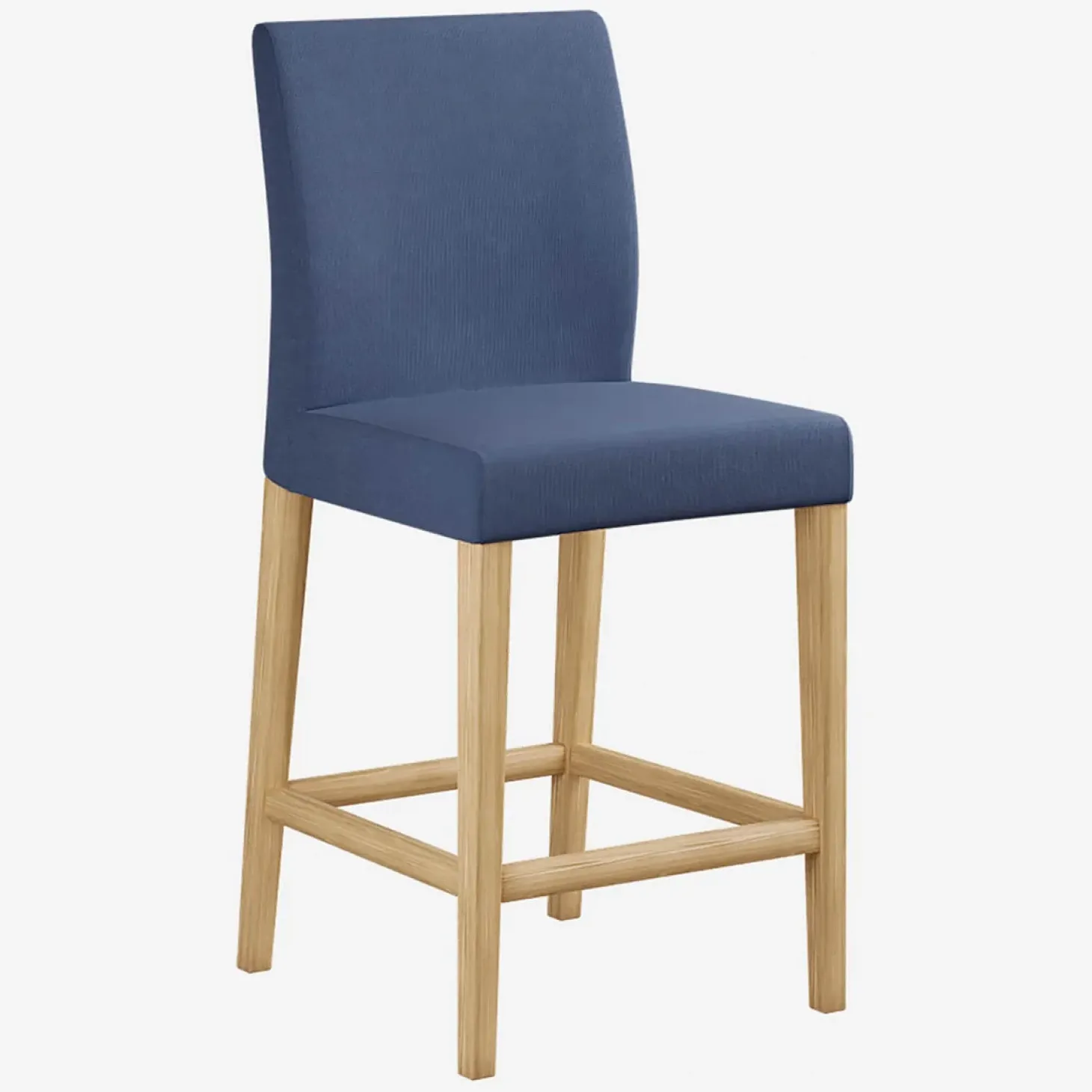 La chaise mi-haute Eleonora est recouverte d’un tissu italien bleu en 100% coton. Elle possède des pieds biseautés en frêne massif et affiche une hauteur totale de 100 cm et une hauteur d’assise de 62 cm.