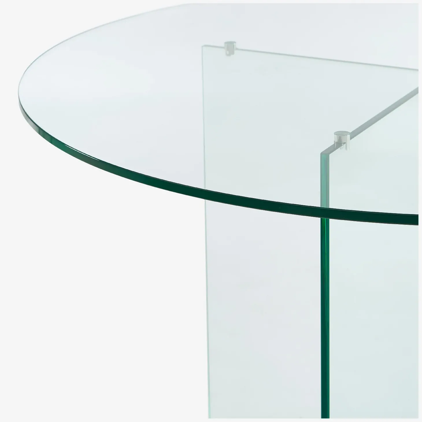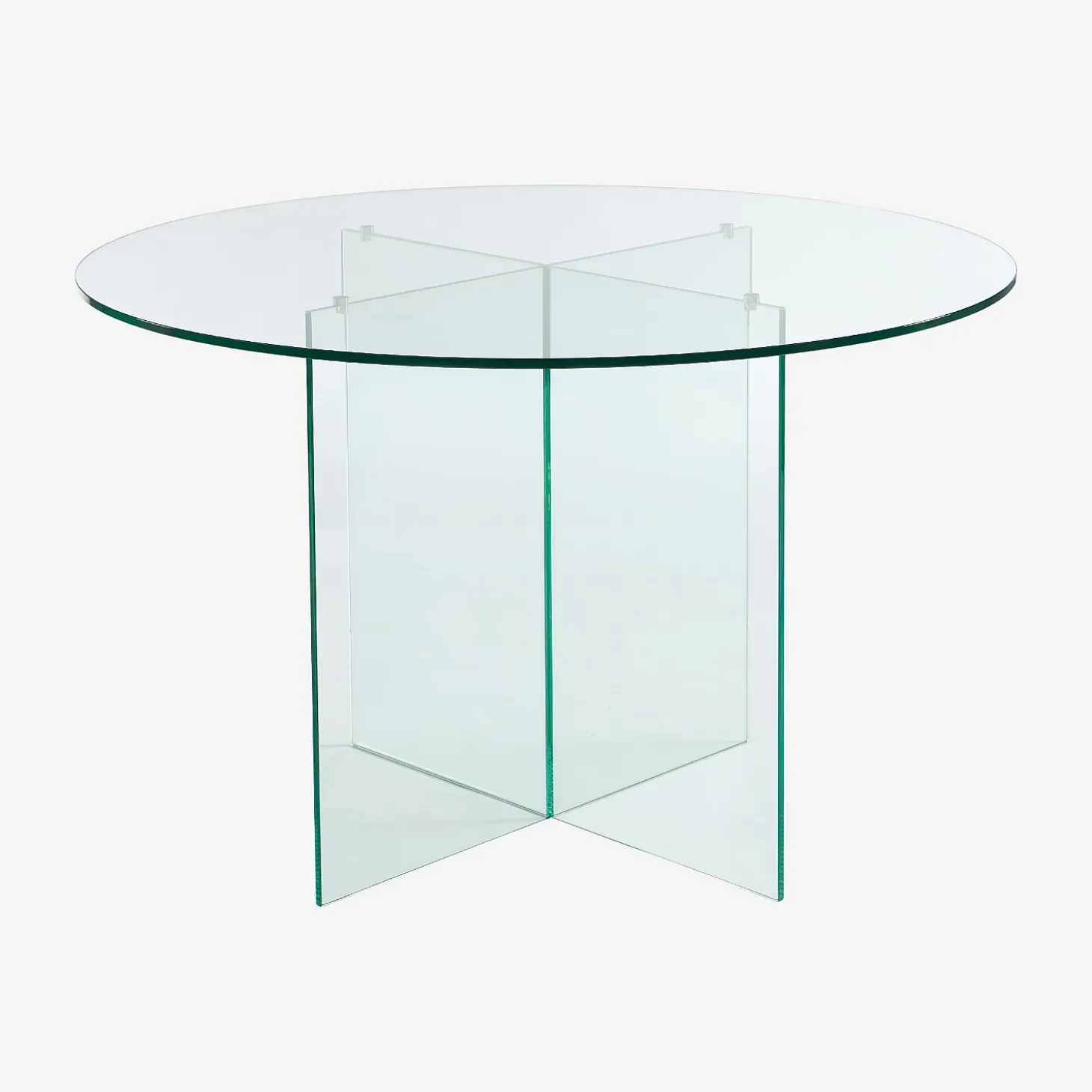 Son plateau rond capte et reflète la lumière avec fluidité, créant un jeu de clarté qui agrandit l’espace et accentue l’impression de légèreté. Le piètement en croix exprime une rigueur géométrique affirmée et souligne l’élégance contemporaine du modèle. Cet équilibre subtil entre structure et transparence confère à l’ensemble une silhouette sculpturale, à la fois discrète et iconique.