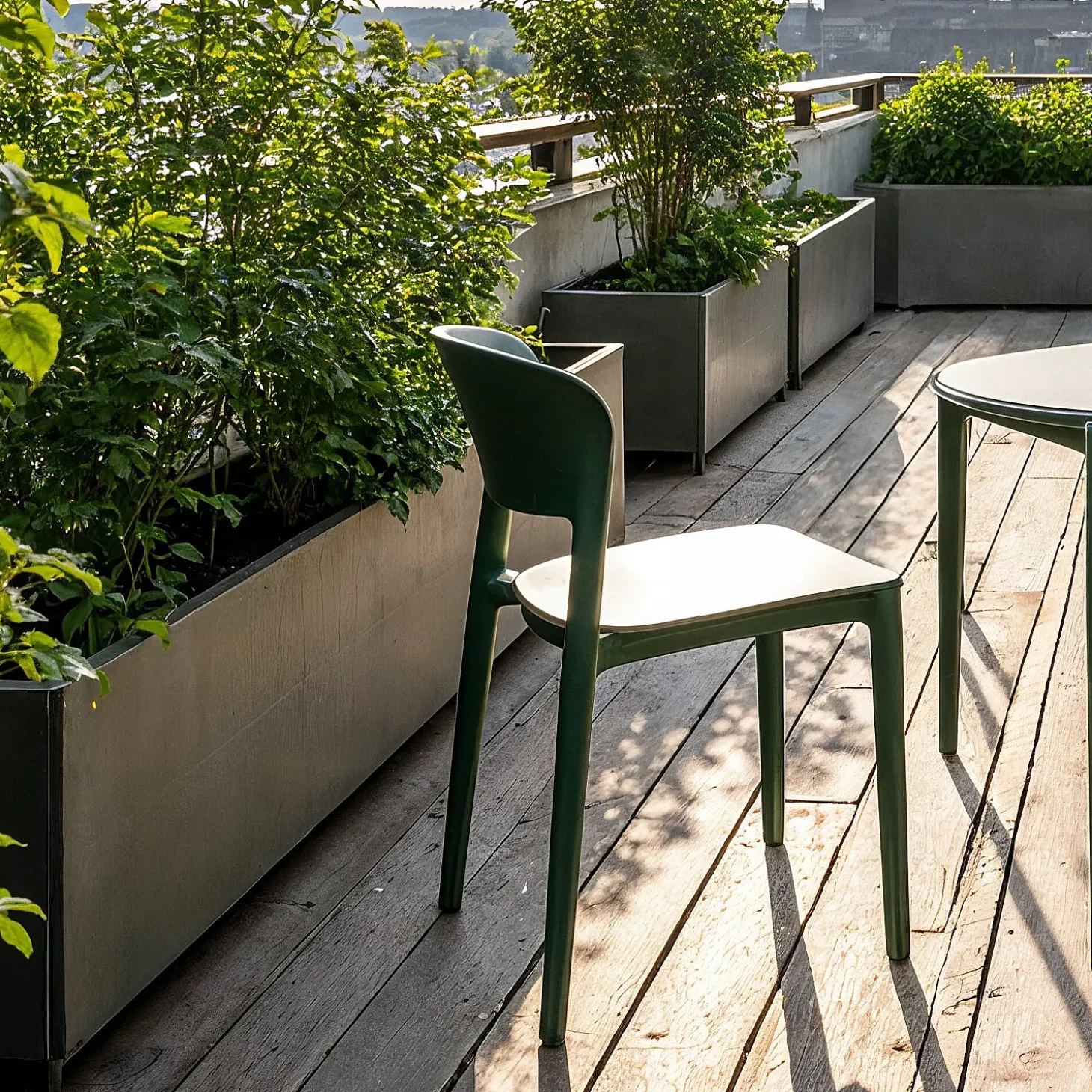 En teinte vert sauge, la chaise de jardin Faraya apporte naturalité et gaieté dans un extérieur.