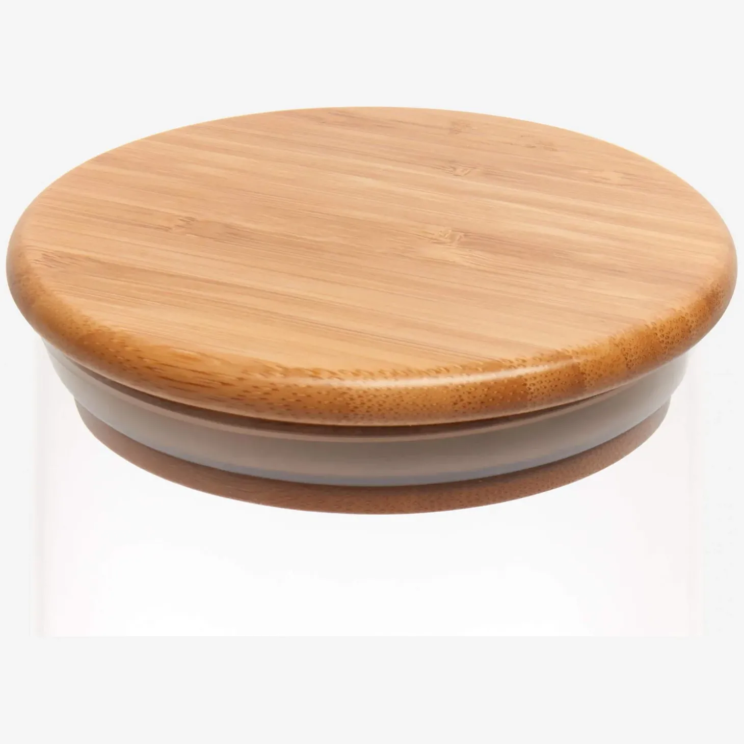 Couvercle en bambouCe bocal en verre borosilicate conjugue résistance thermique et design épuré. Son couvercle en bambou en fait un indispensable aussi pratique qu’esthétique pour une cuisine du quotidien.