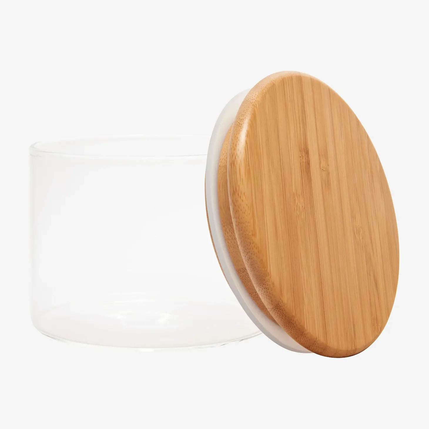 Couvercle en bambouFerm pense aux besoins avec ce bocal en verre et bambou, un allié élégant et fonctionnel pour une cuisine zéro déchet.