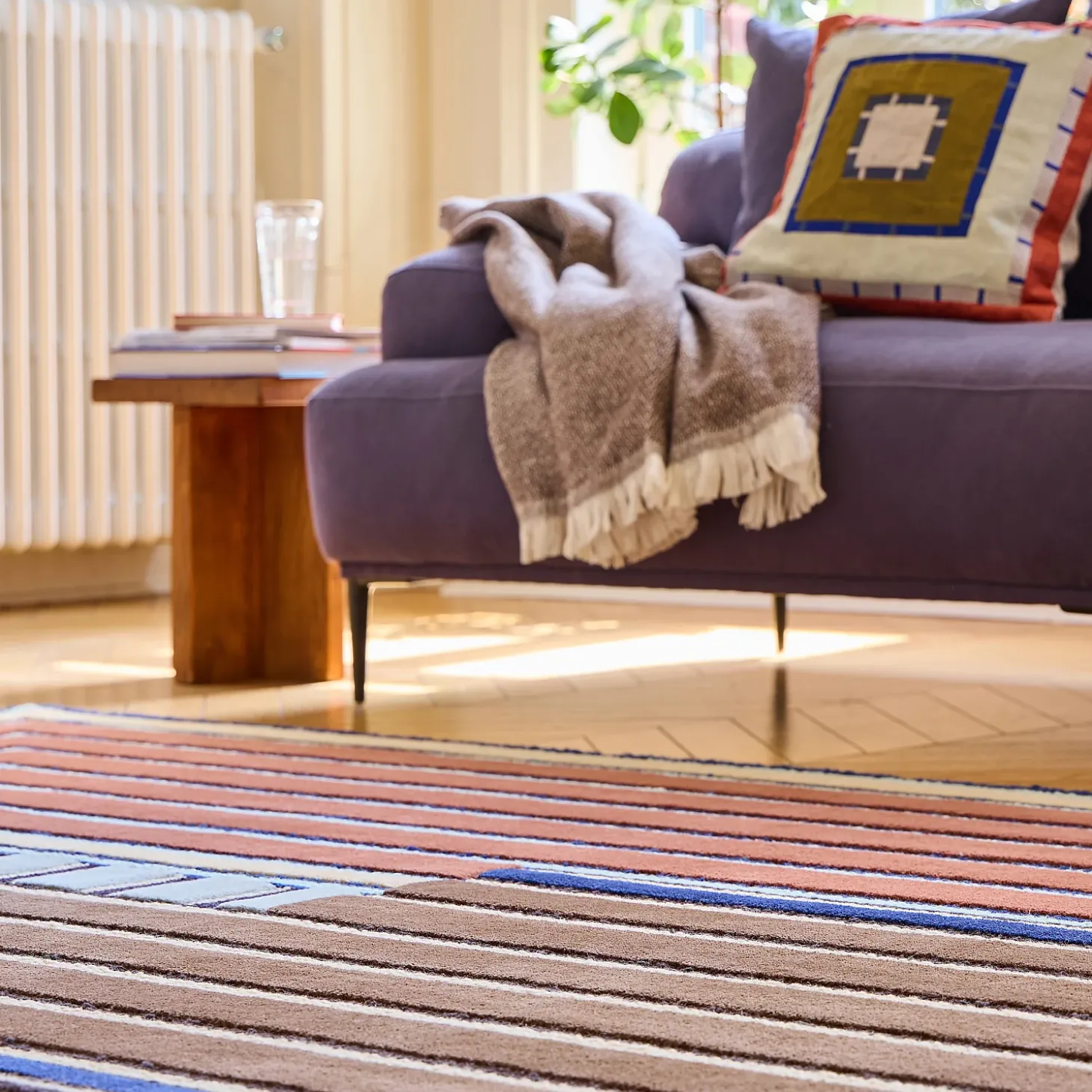 Le Galon 165 x 240 cm devient ainsi une œuvre à la fois graphique et sensorielle, une pièce qui engage l’œil tout en apportant une sensation de confort et de chaleur à l’environnement.