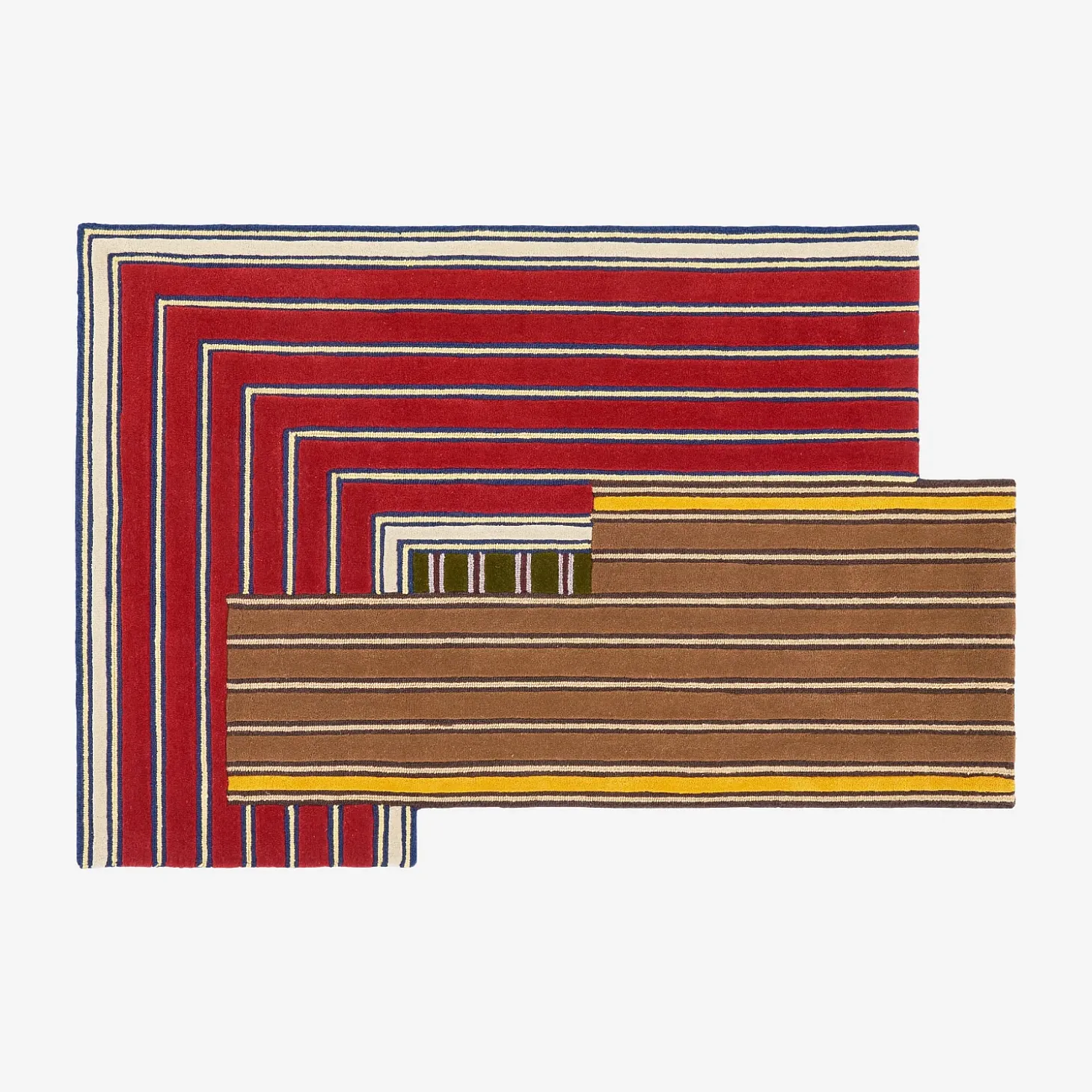 Dans cette version du tapis Galon 130 x 190 cm, Constance Frapolli explore une palette de tons bruns et terreux, ponctuée de touches éclatantes qui viennent dynamiser l’ensemble.