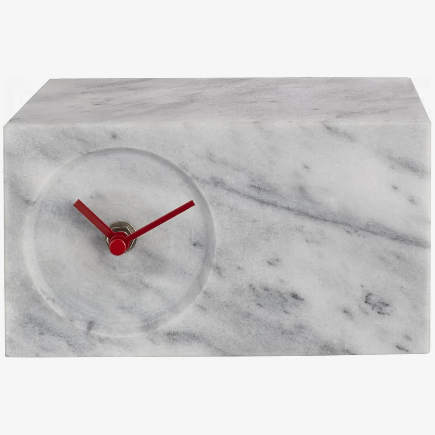 Gina est une petite horloge de bureau en marbre réveillée par deux aiguilles rouges. Horloge en marbre. 1x AA. Pile non incluse.L’horloge Gina associe la sobriété du marbre à l’énergie de ses aiguilles rouges pour apporter une touche design et contemporaine à votre bureau.
