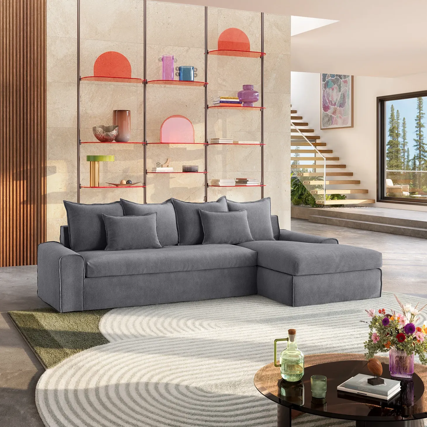 Le canapé d’angle droit Ginosa incarne l’équilibre parfait entre confort et élégance, pour un instant suspendu de plénitude.