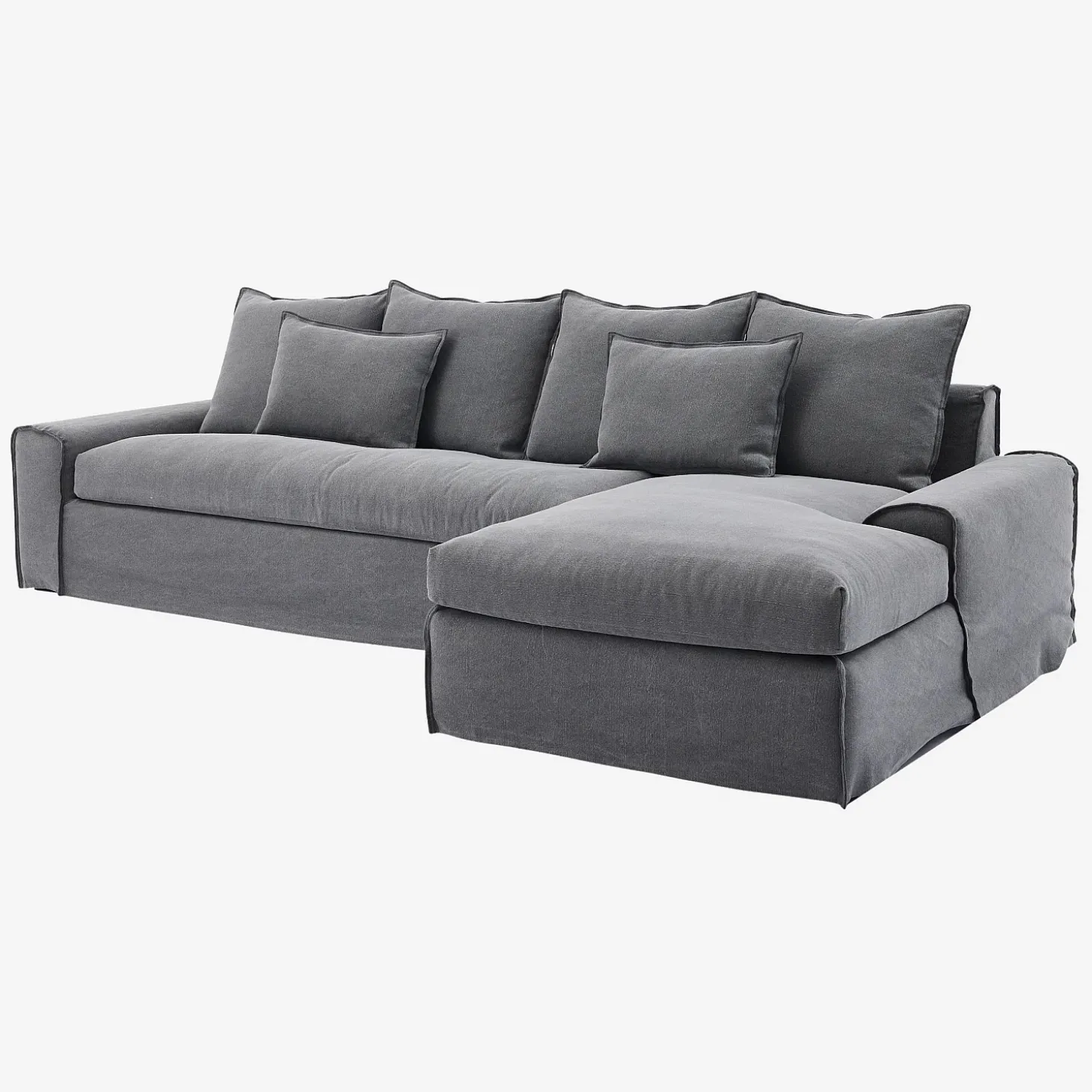 Enveloppées de lin et de coton, ses lignes naturelles inspirent une sensation de calme et de délicatesse, comme une invitation à s’immerger dans un cocon de sérénité. Sa teinte gris ardoise, sobre et intemporelle, s’intègre avec grâce dans tous les espaces, offrant une profondeur apaisante qui rehausse l’ambiance sans la dominer.