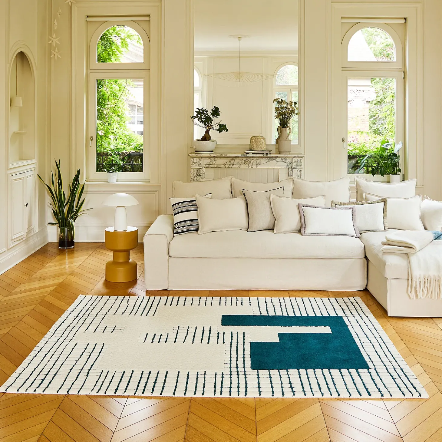 En plus de son esthétique raffinée, ce tapis 100% laine offre une douceur naturelle et un confort optimal, pour un espace à la fois chaleureux et design.