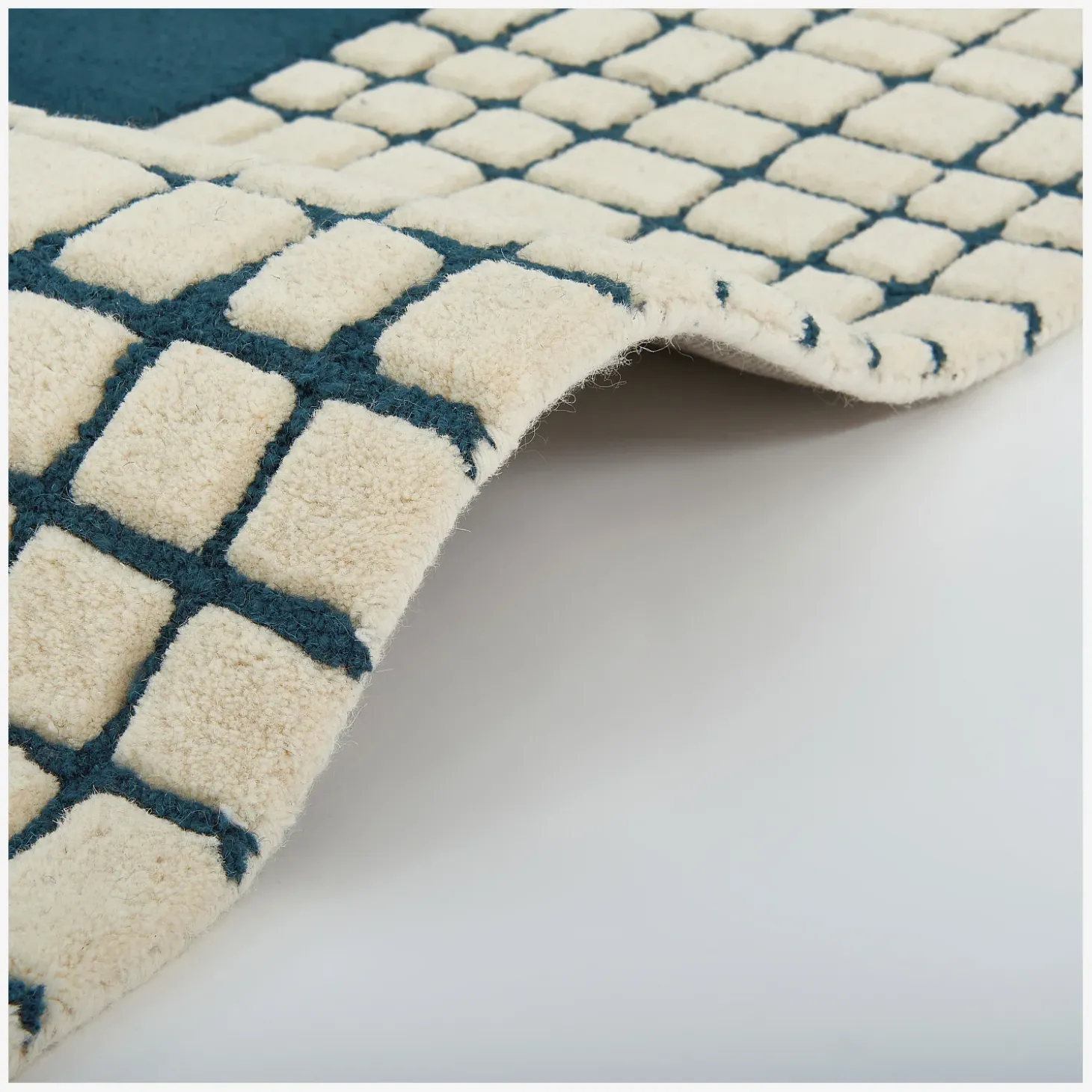 Gloria joue avec les formes et les perspectives, créant un motif carreaux à la fois original et apaisant.