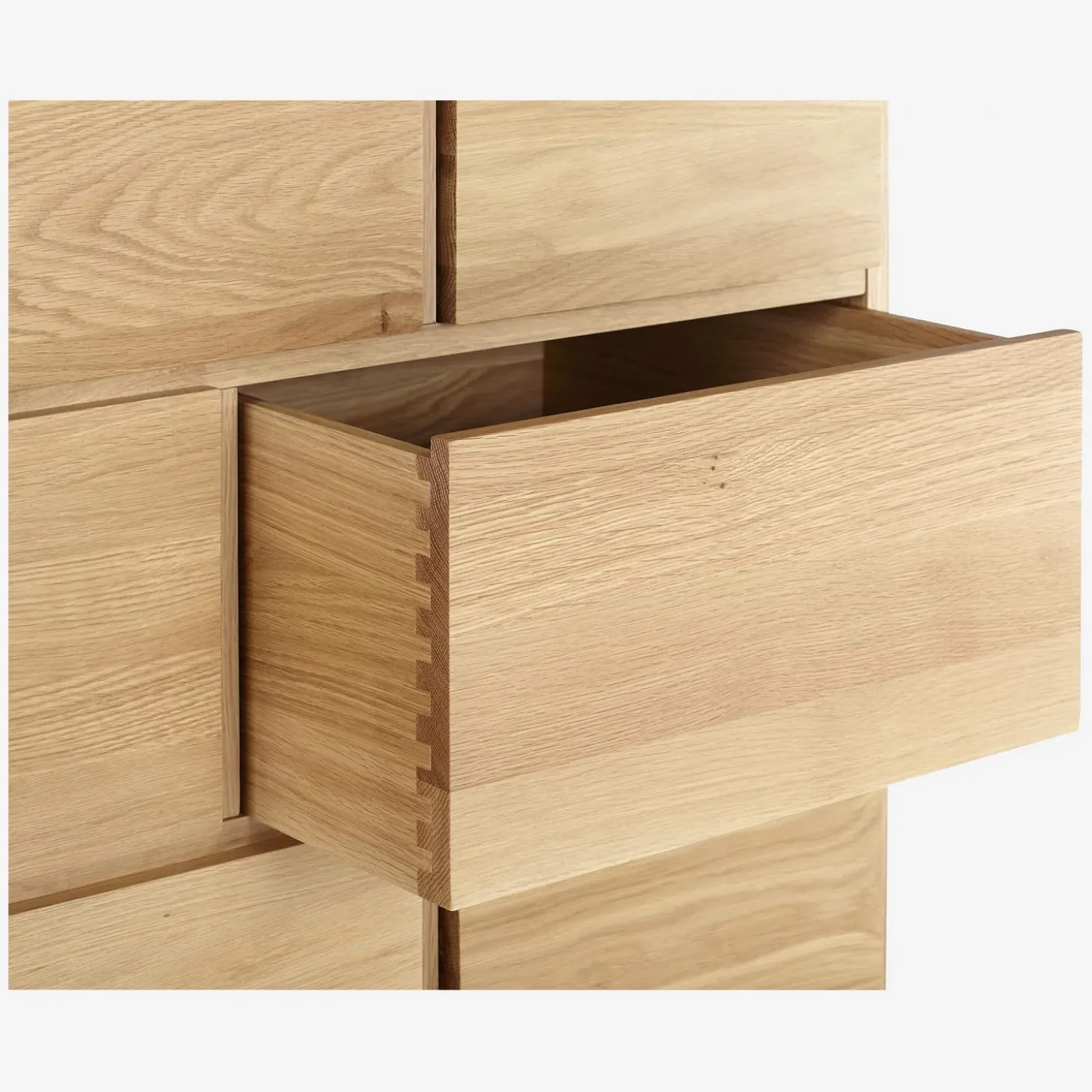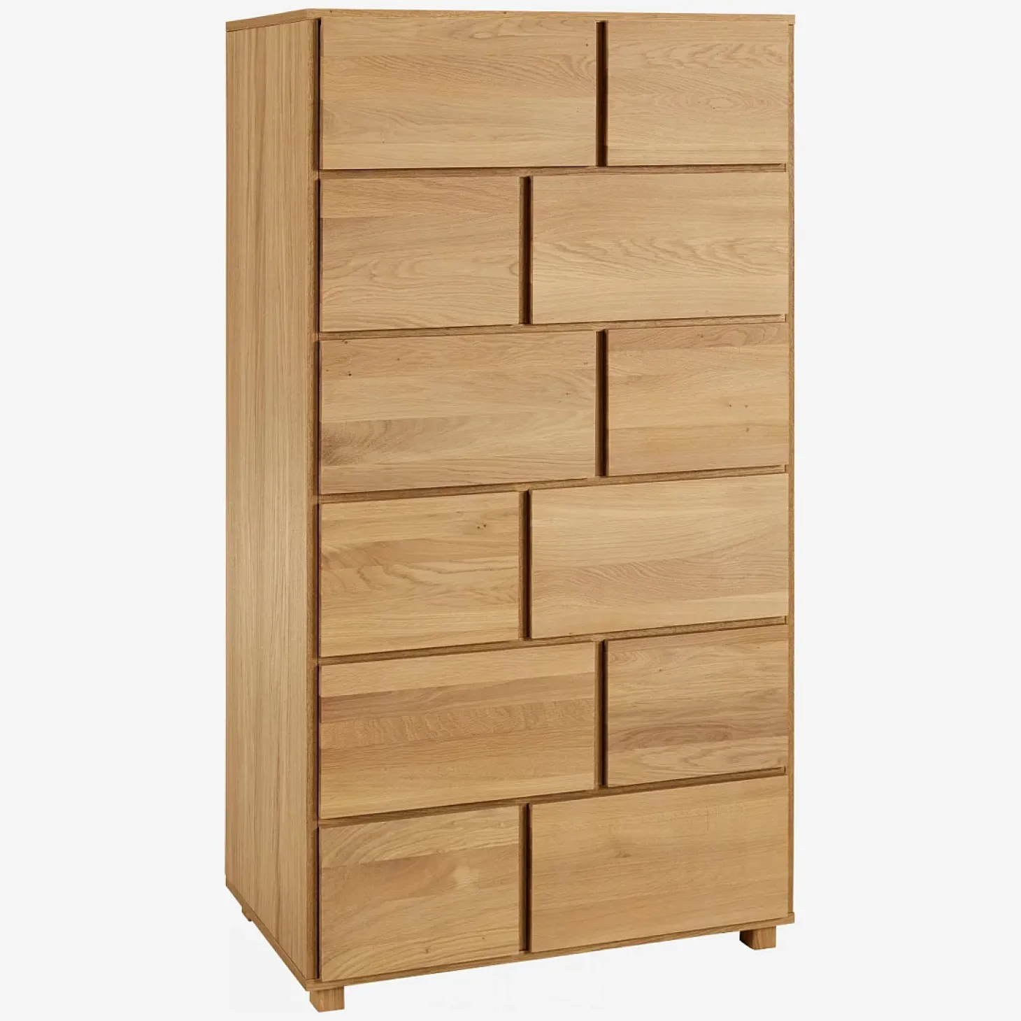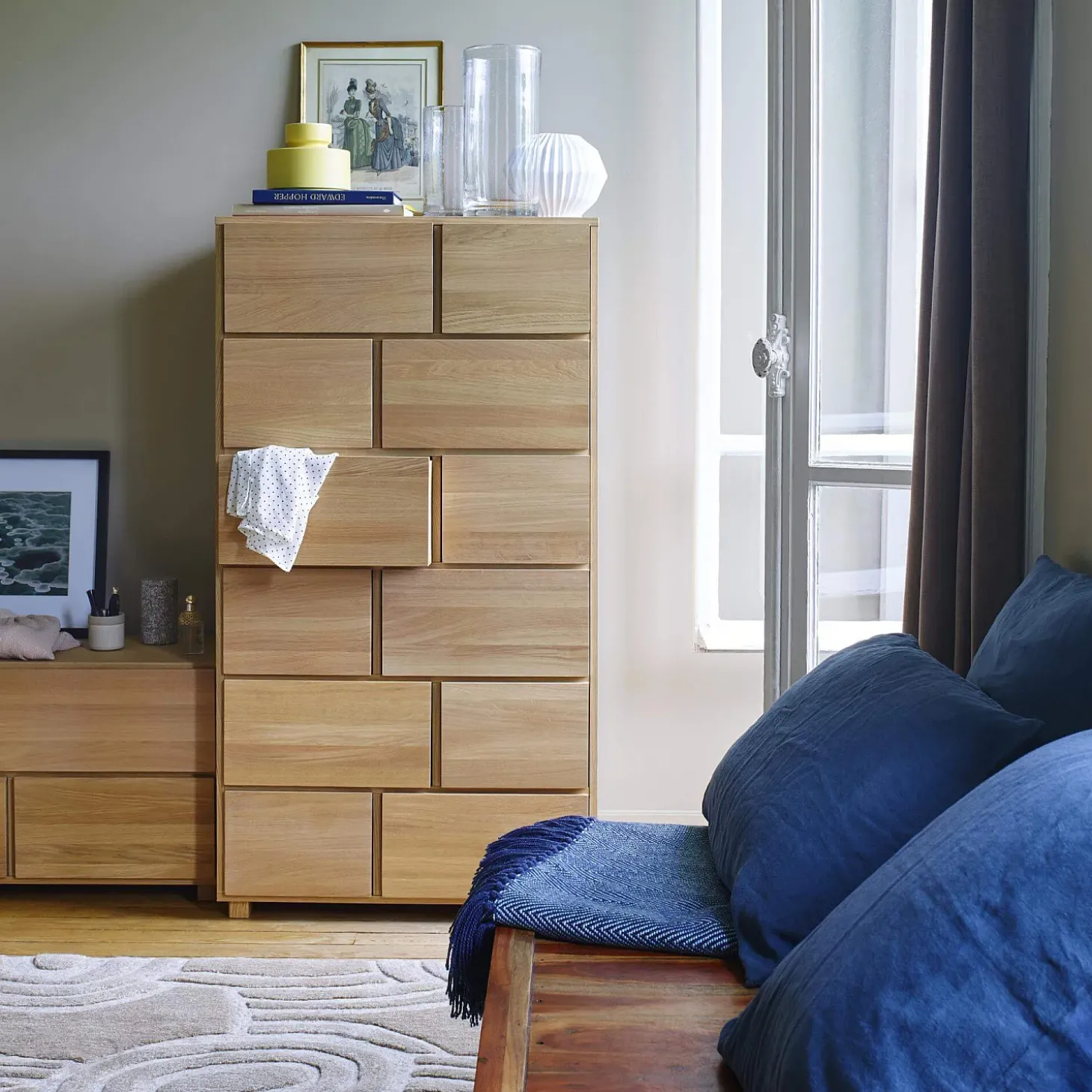 Aussi design que fonctionnelle, le chiffonnier Hanita est en chêne et possède 12 tiroirs en chêne massif sur 6 niveaux. Il optimise votre espace en multipliant les rangements. Chaque tiroir peut être dédié à un type de vêtements, d’effets personnels ou de documents importants.