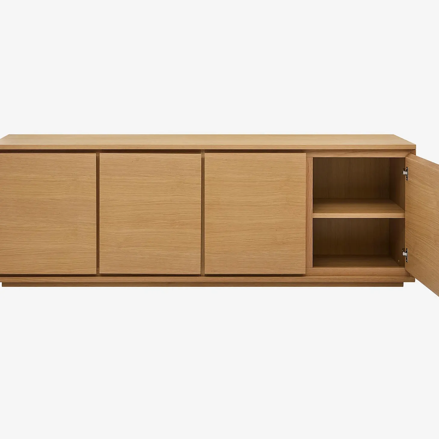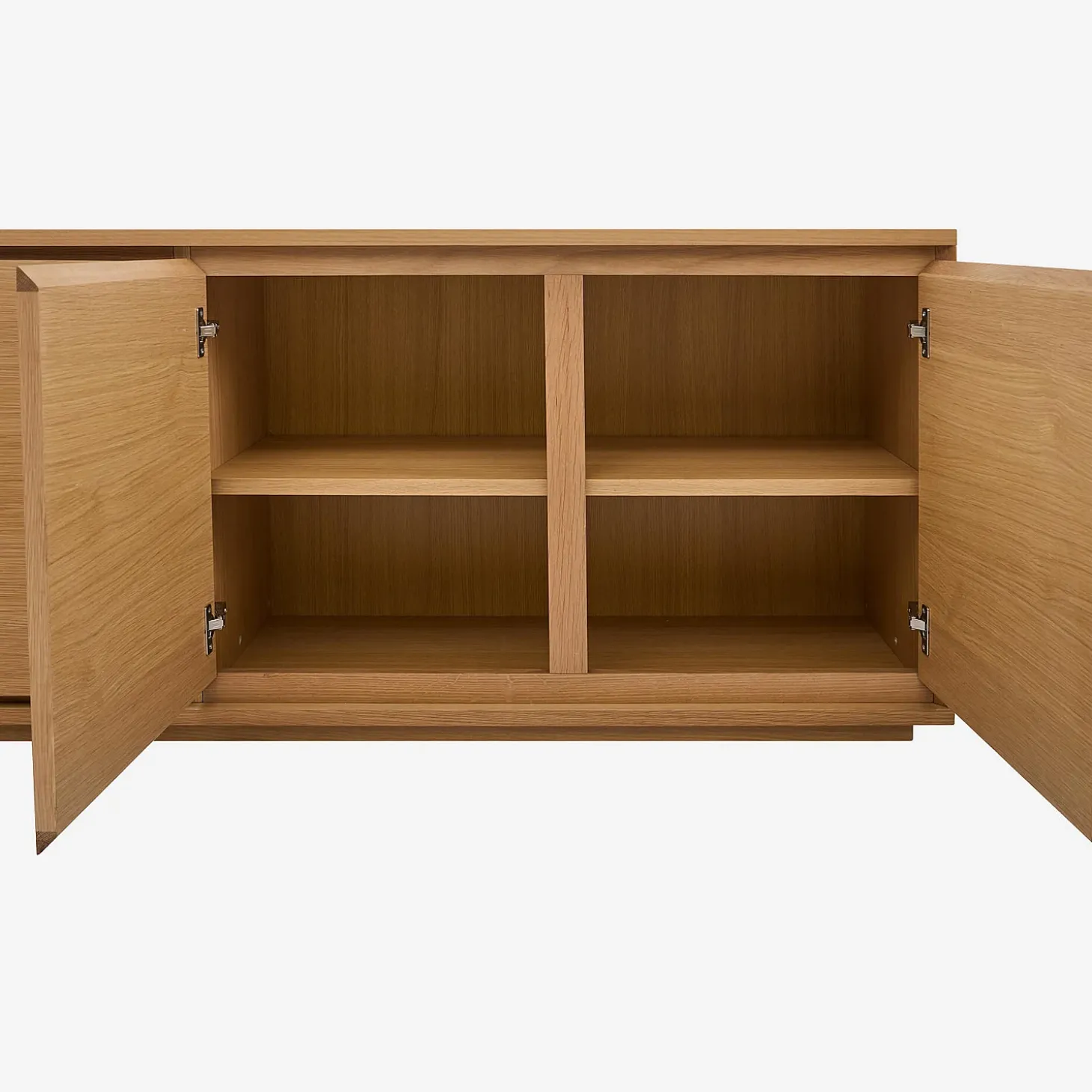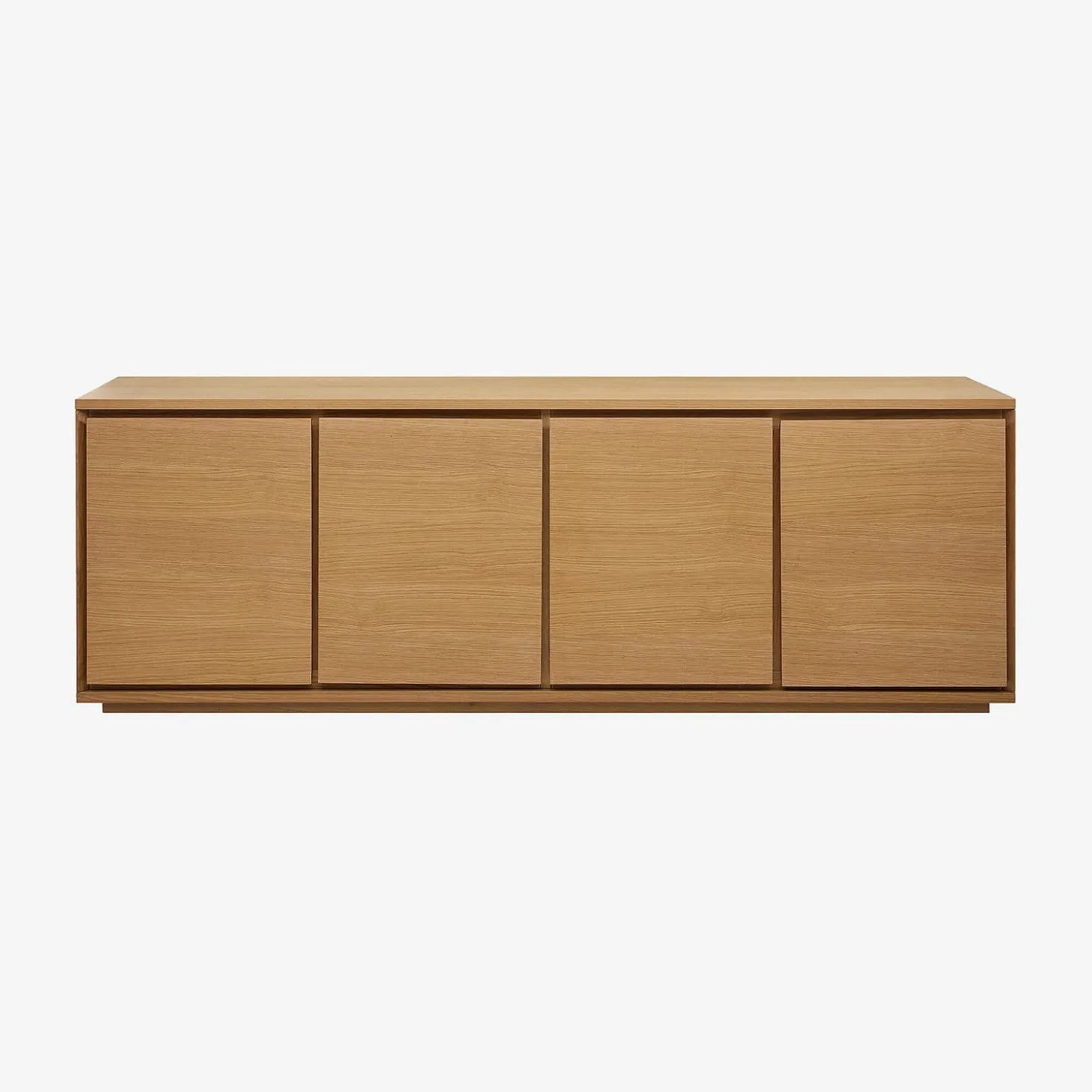 Le buffet bas 4 portes en chêne Hazo s’invite dans le salon ou la salle à manger, apportant une note authentique.