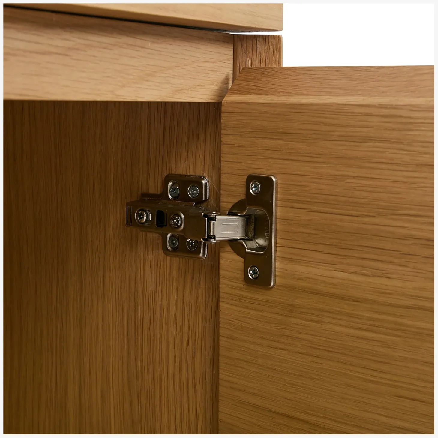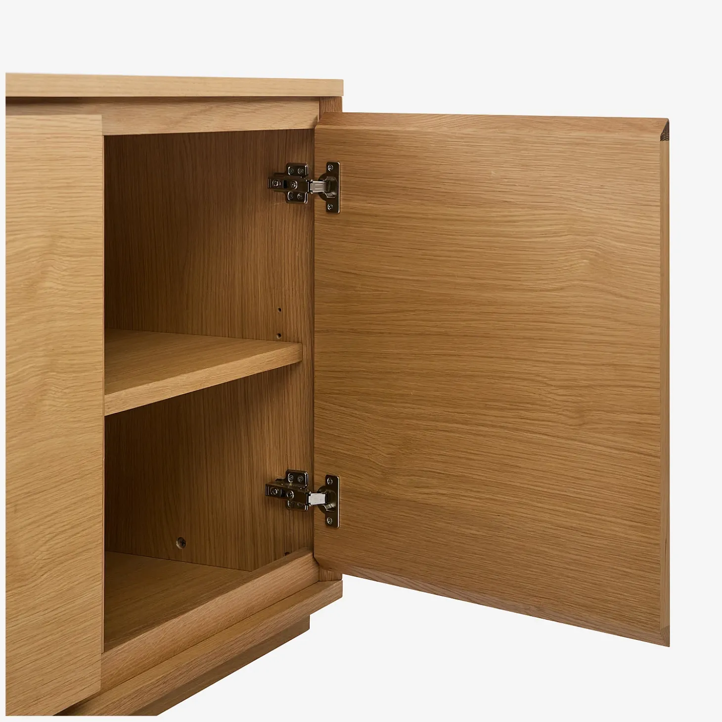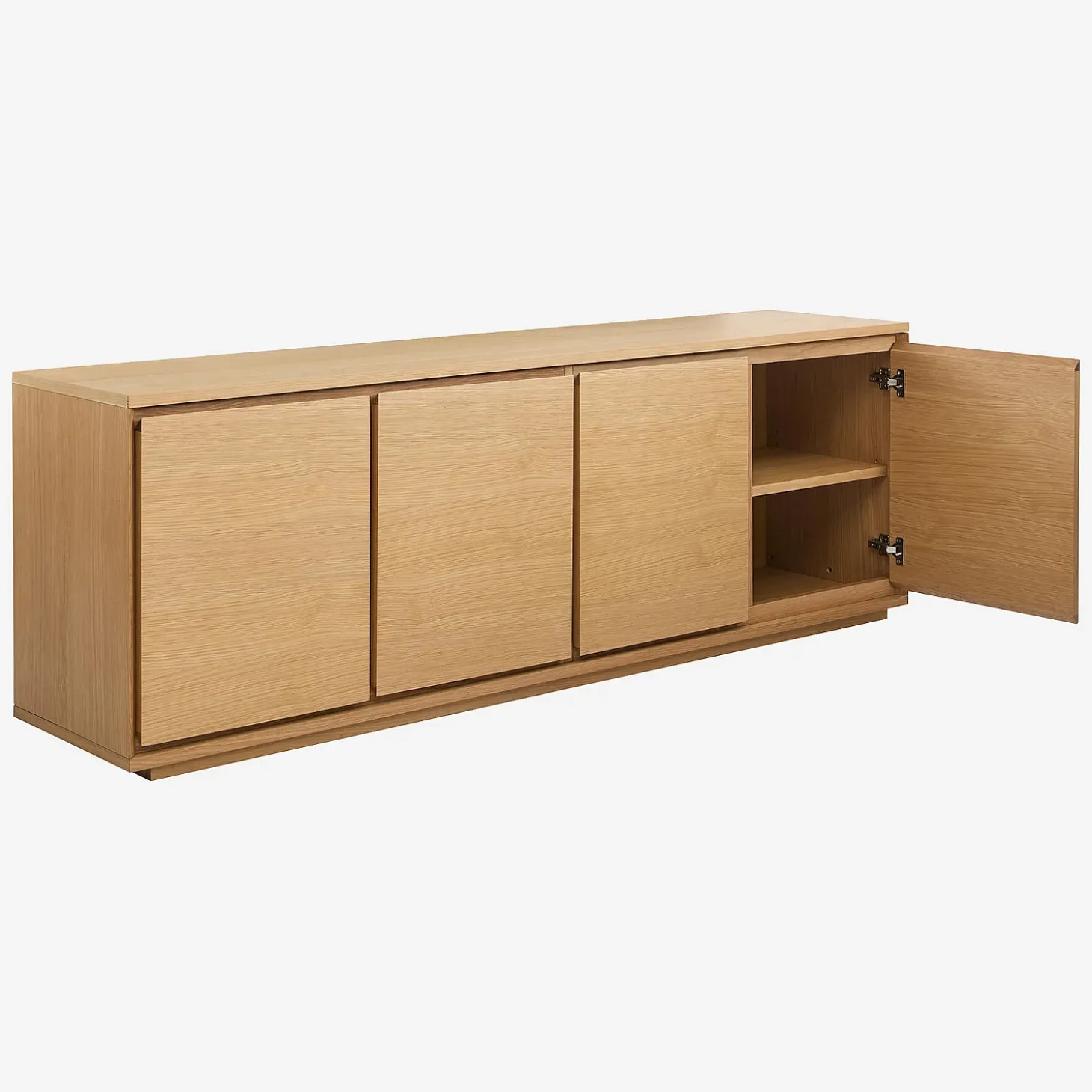 Le buffet bas 4 portes en chêne Hazo s’invite dans le salon ou la salle à manger, apportant une note authentique.
