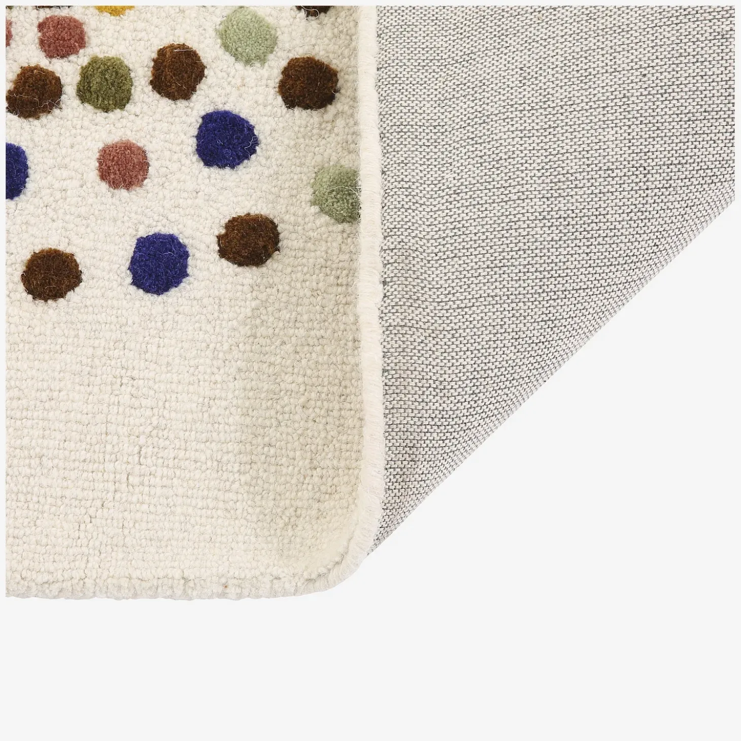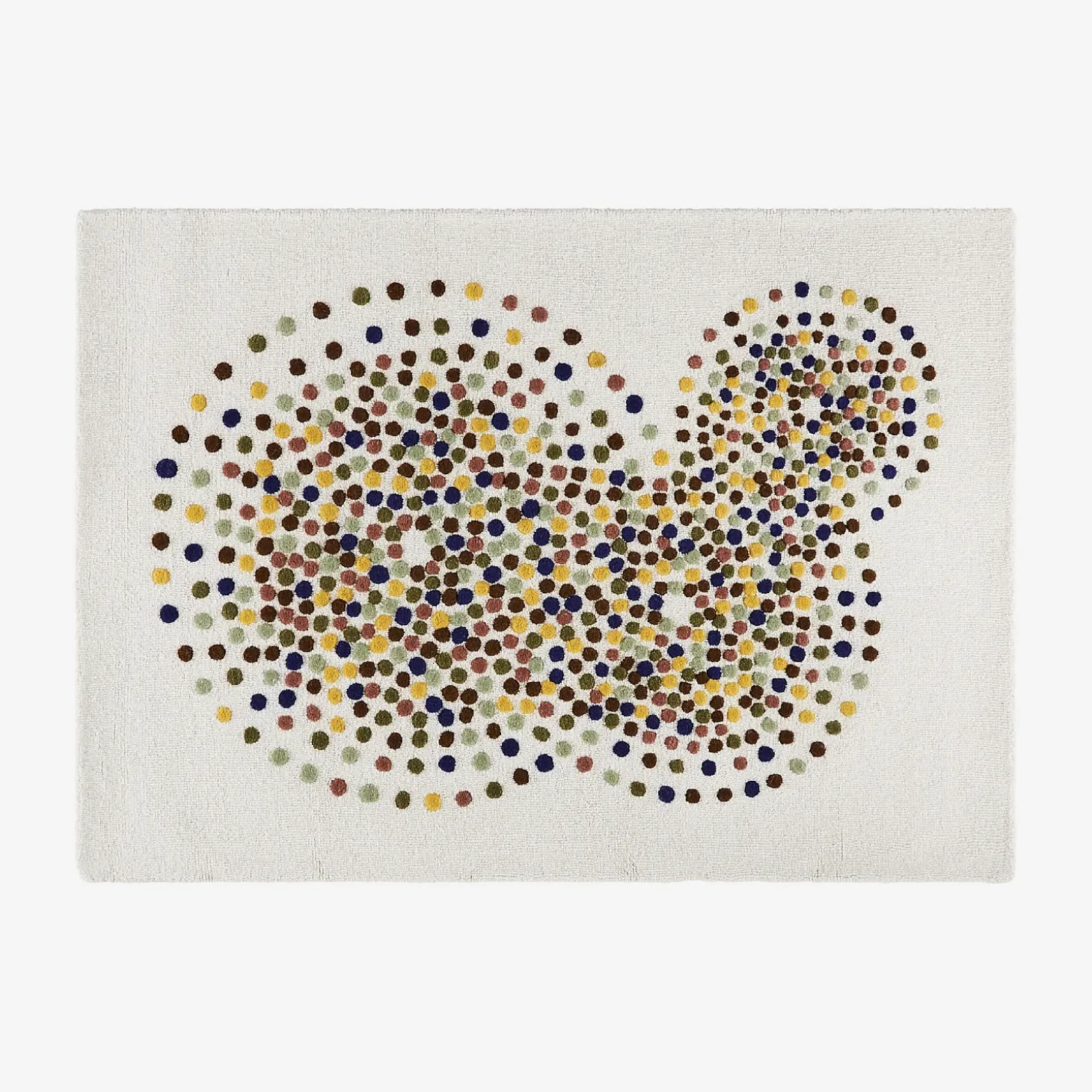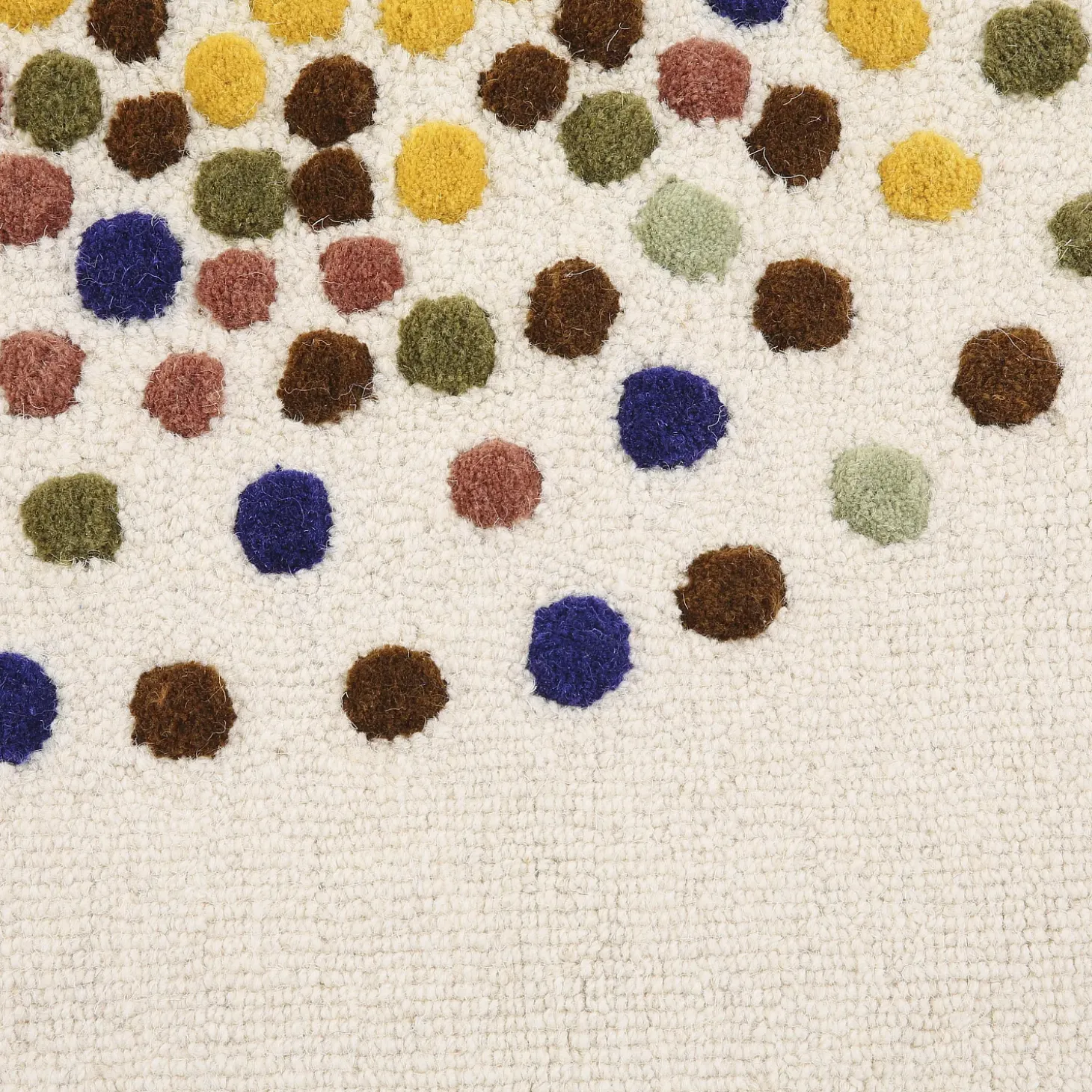Le tapis Idylle en 120 x 170 cm s’inspire de l’univers du kaléidoscope : une multitude de pois colorés disposés en composition libre. Le motif évoque la légèreté, la lumière, et l’enfance — un parti-pris chaleureux et accueillant. Ce tapis 100% laine est tufté à la main par des artisans indiens. Chaque fil est piqué, coupé, puis brossé pour faire ressortir la texture et le confort.