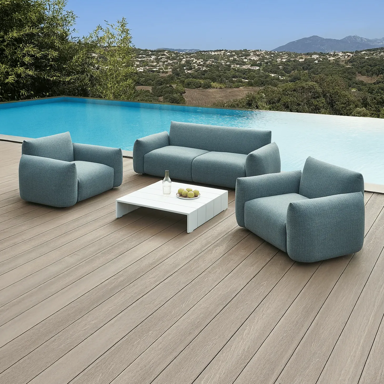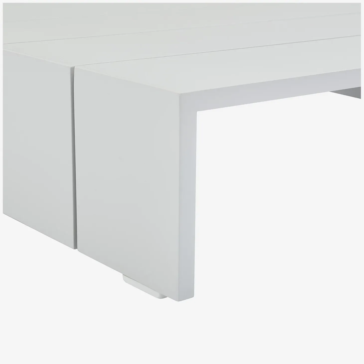 En blanc opalin, la table basse Imarui capture la lumière des journées d’été et devient un élément phare des terrasses et jardins.