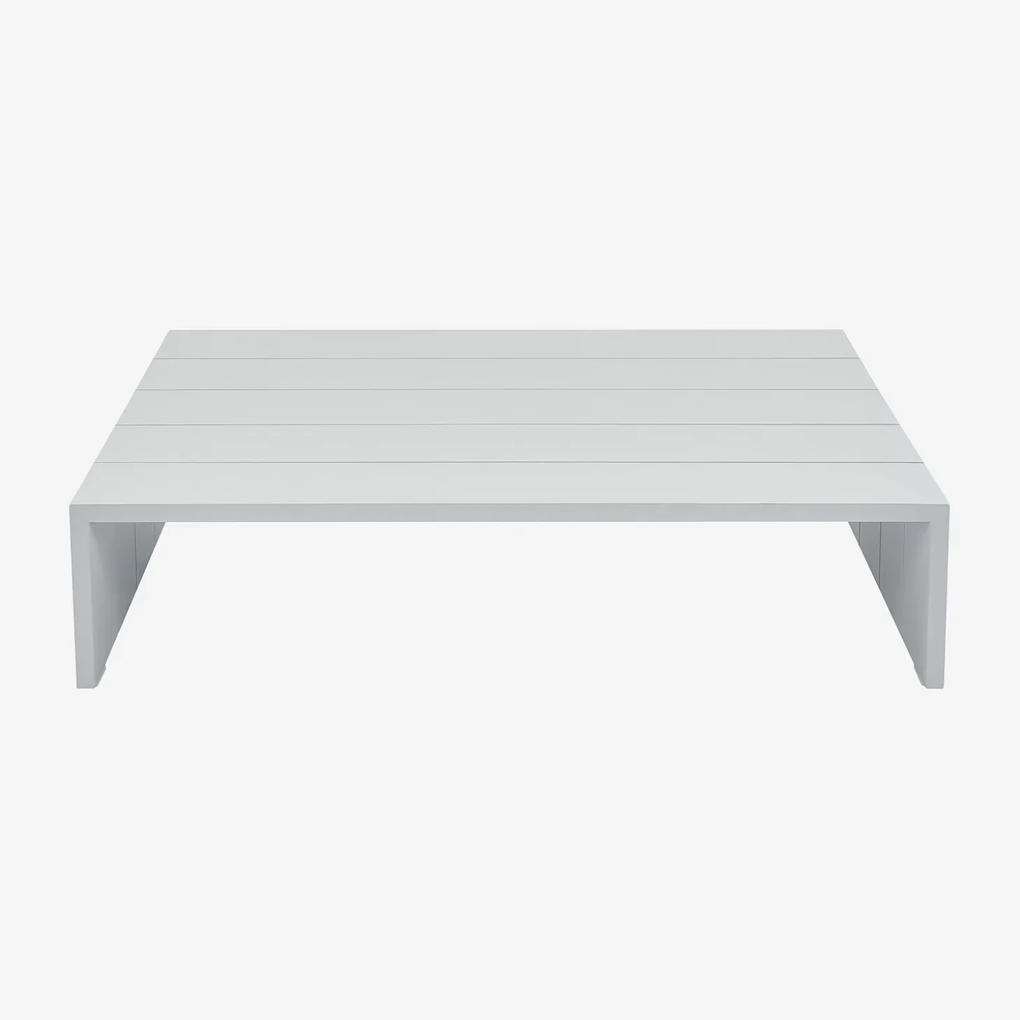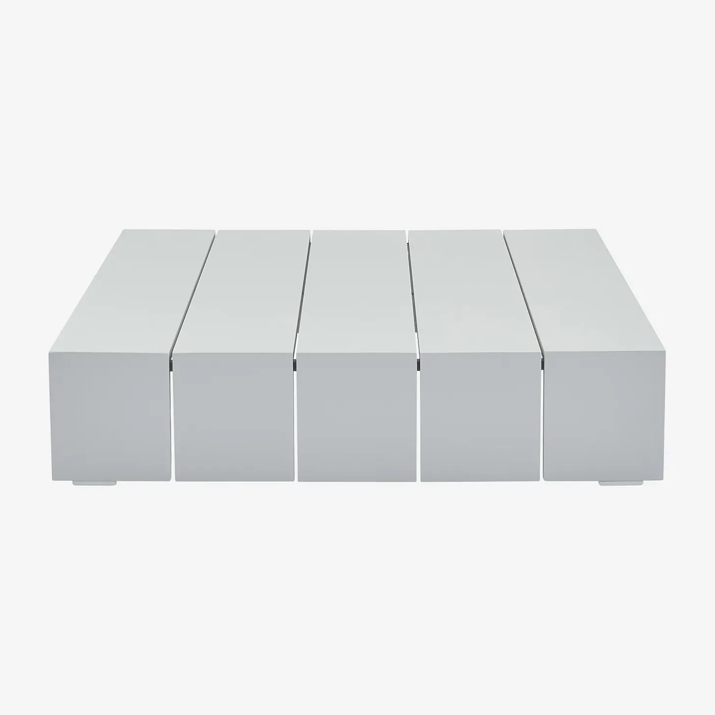 Inspiré des palettes de bois, le design carré de la table basse d’extérieur Imarui revisite l’esthétique industrielle dans une version épurée tout en aluminium.