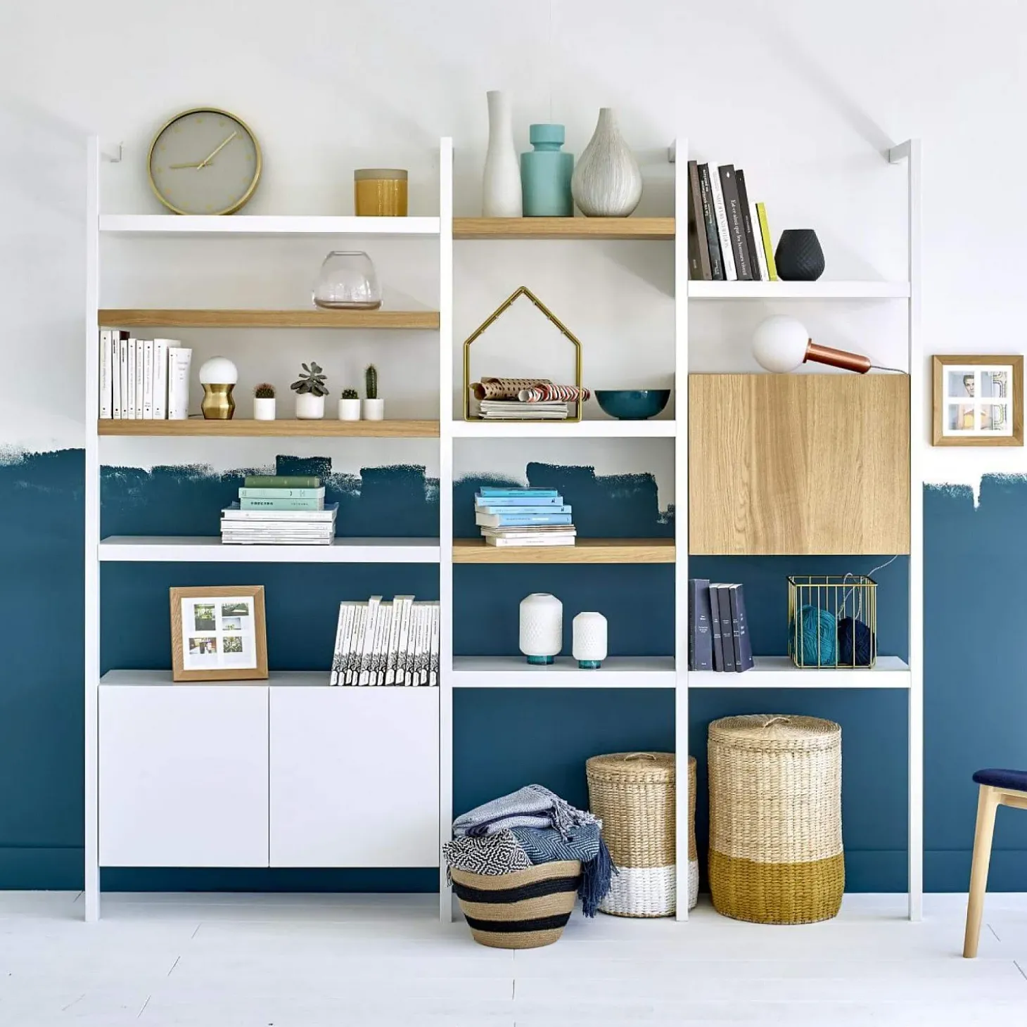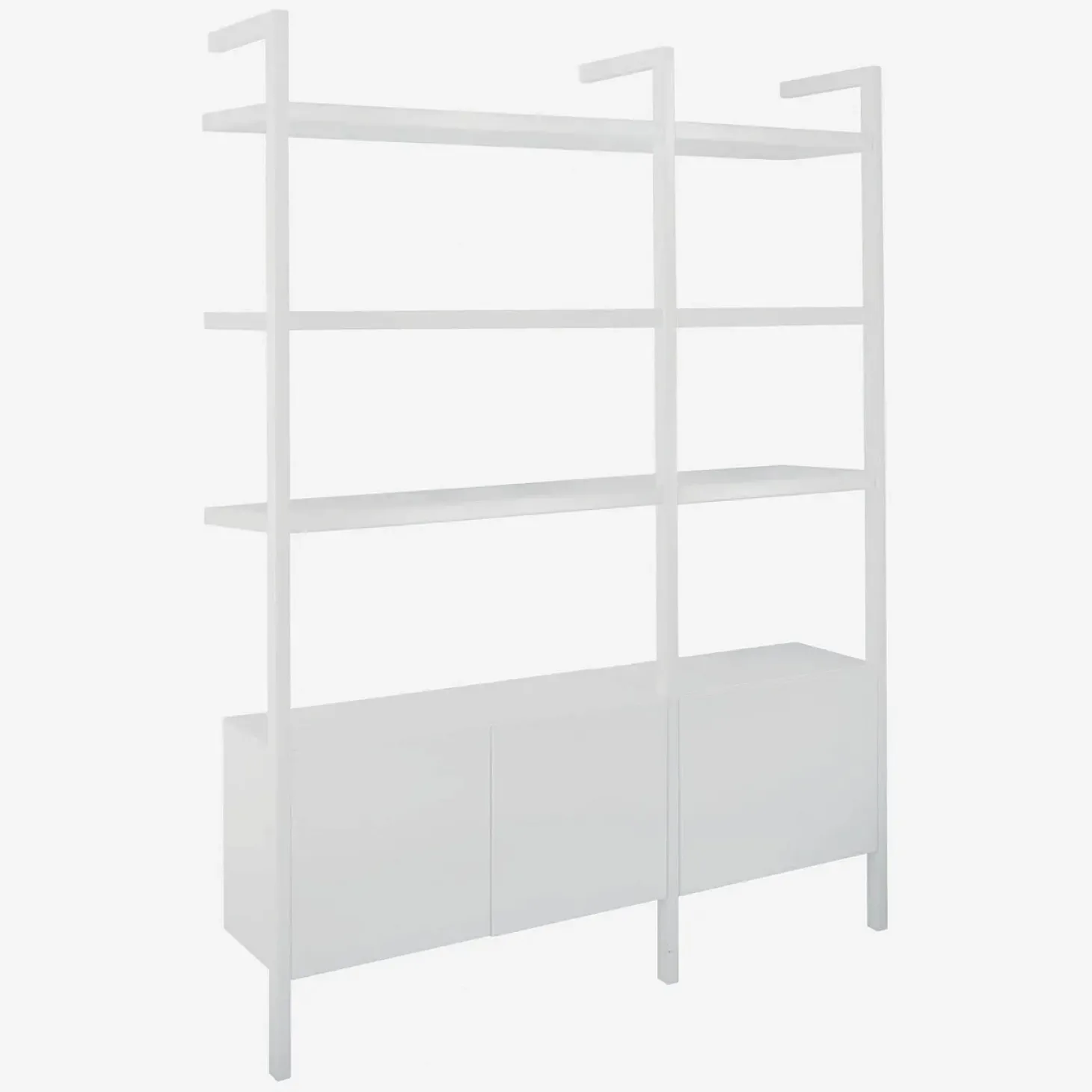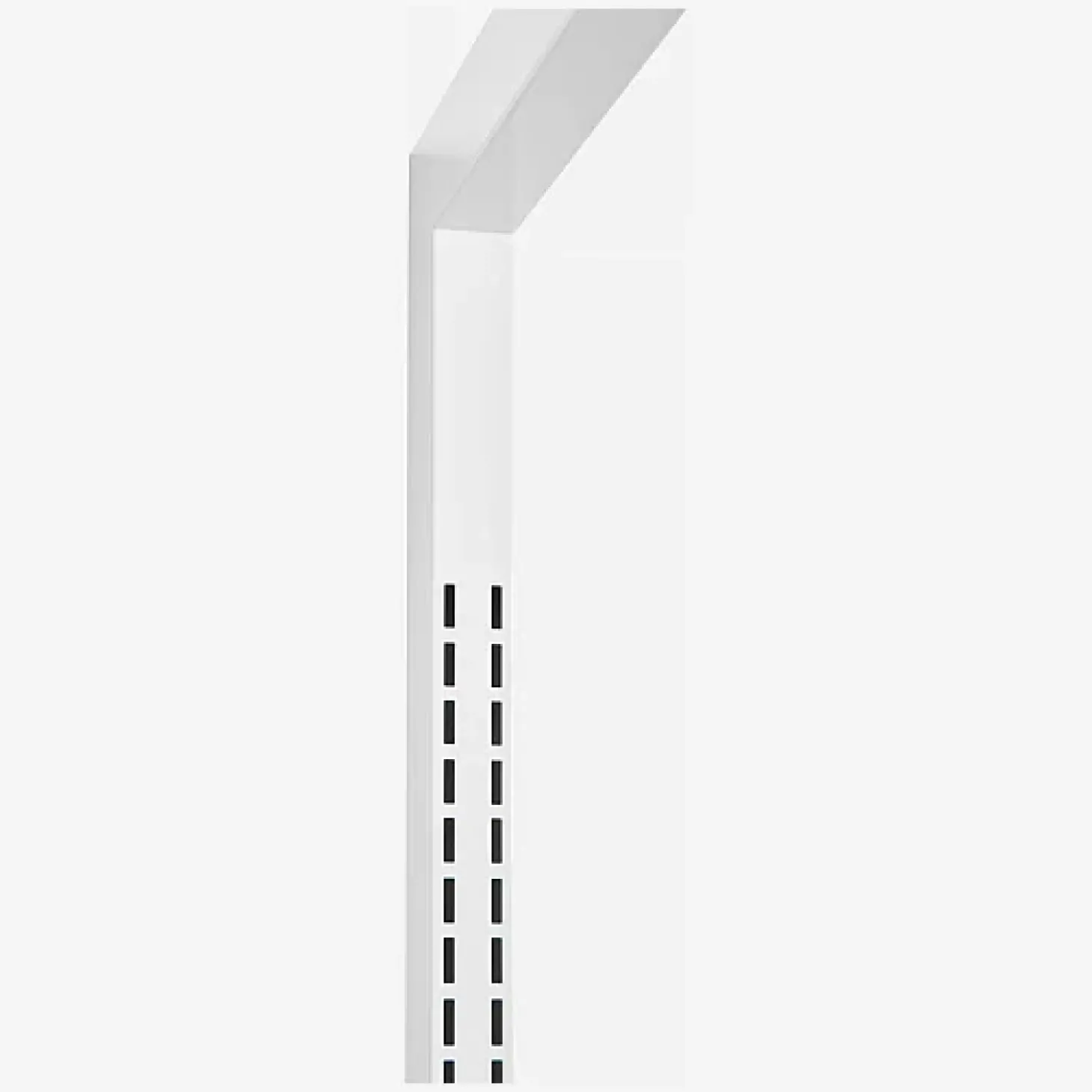 Le montant d’étagère Influence de 200 cm de hauteur est en acier blanc. Très robuste, il se fixe au mur et utilise un système à crémaillère permettant l’ajout d’étagères.