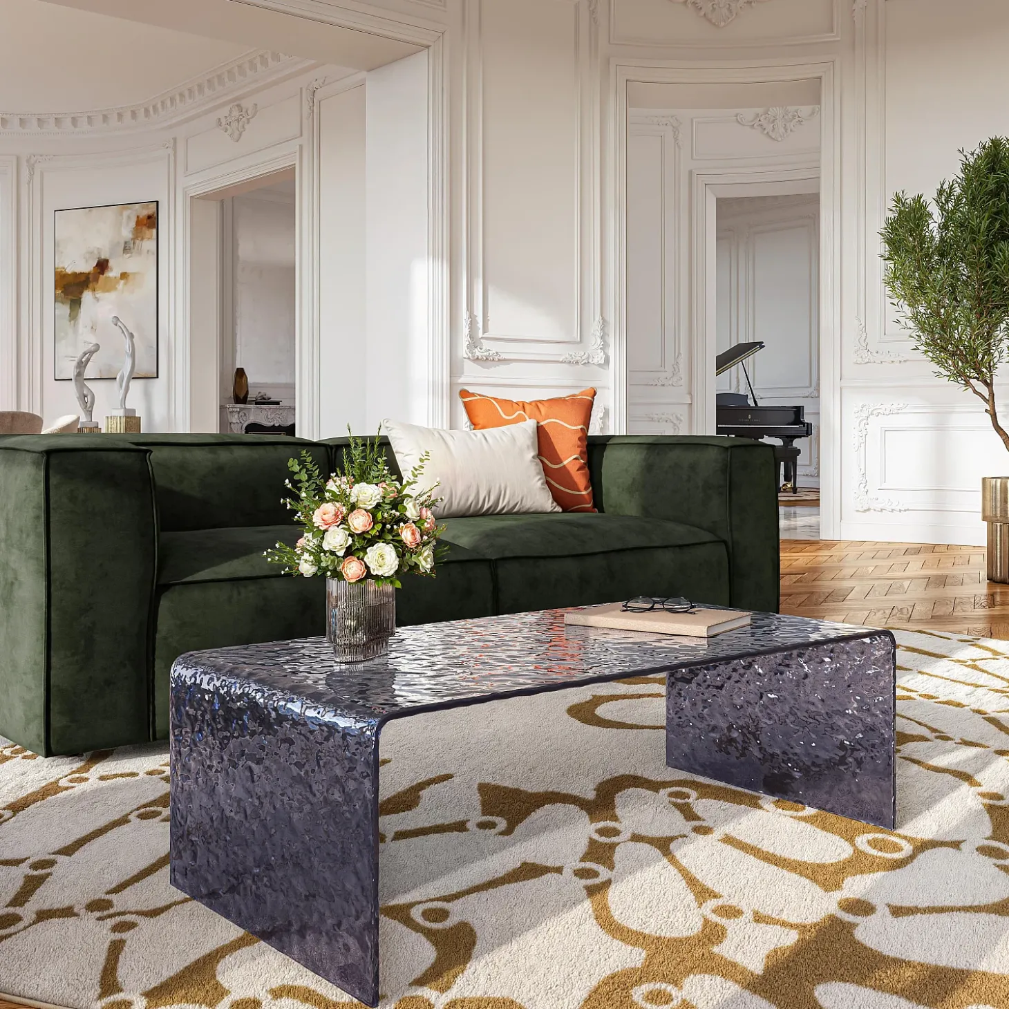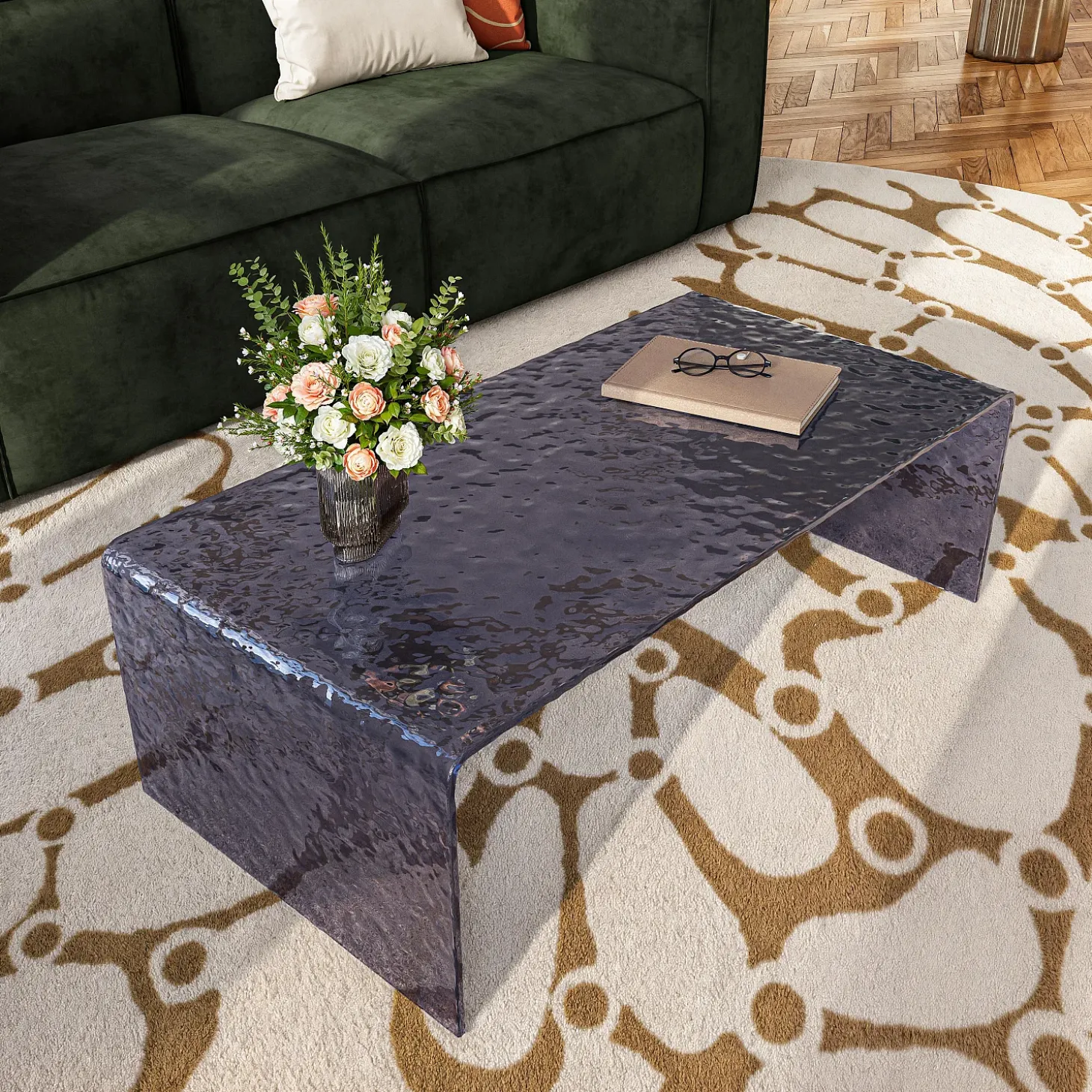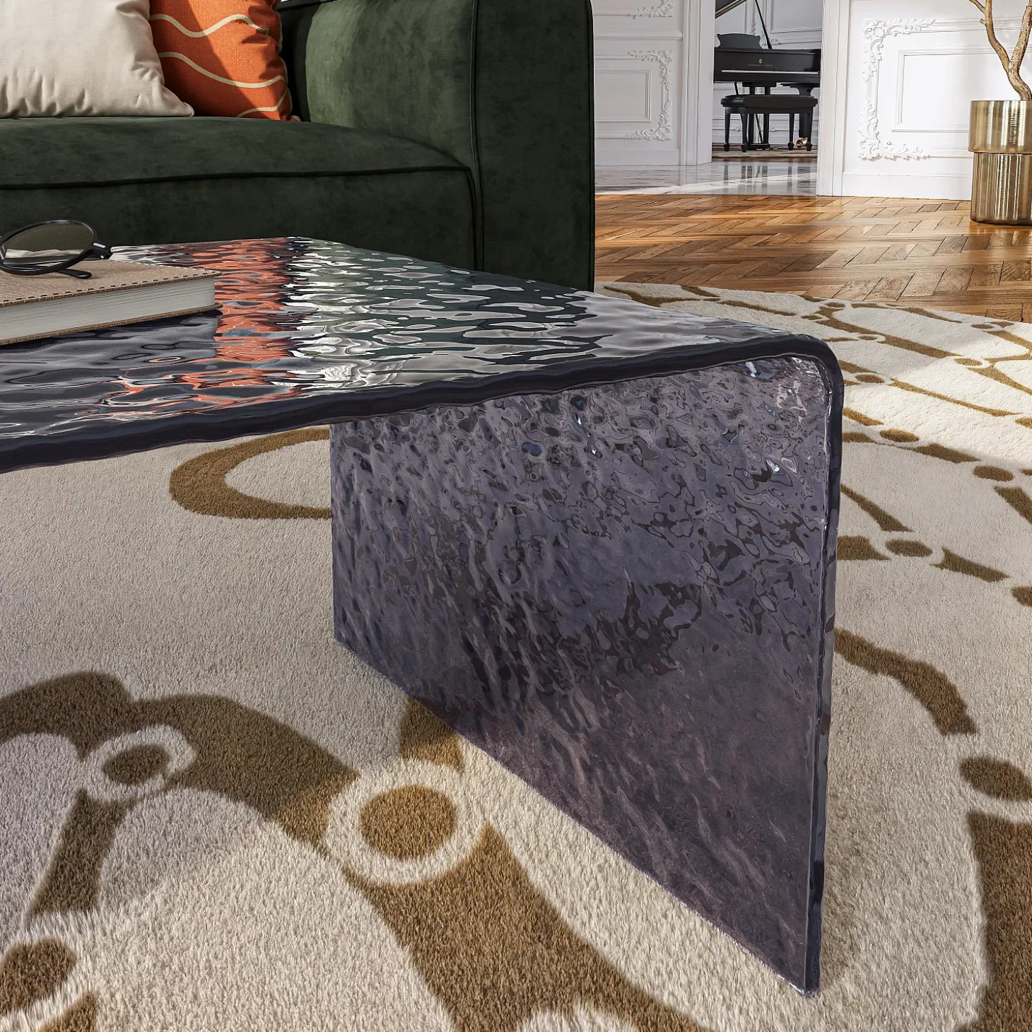 Charge maximale supportée : 30 kgLignes rectangulaires, verre bullé teinté et transparence définissent cette table basse au caractère affirmé. Une pièce graphique qui structure le salon avec finesse et légèreté.