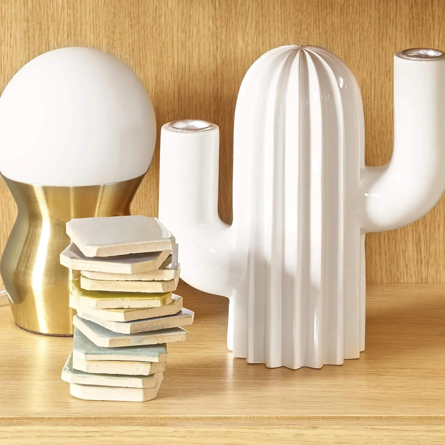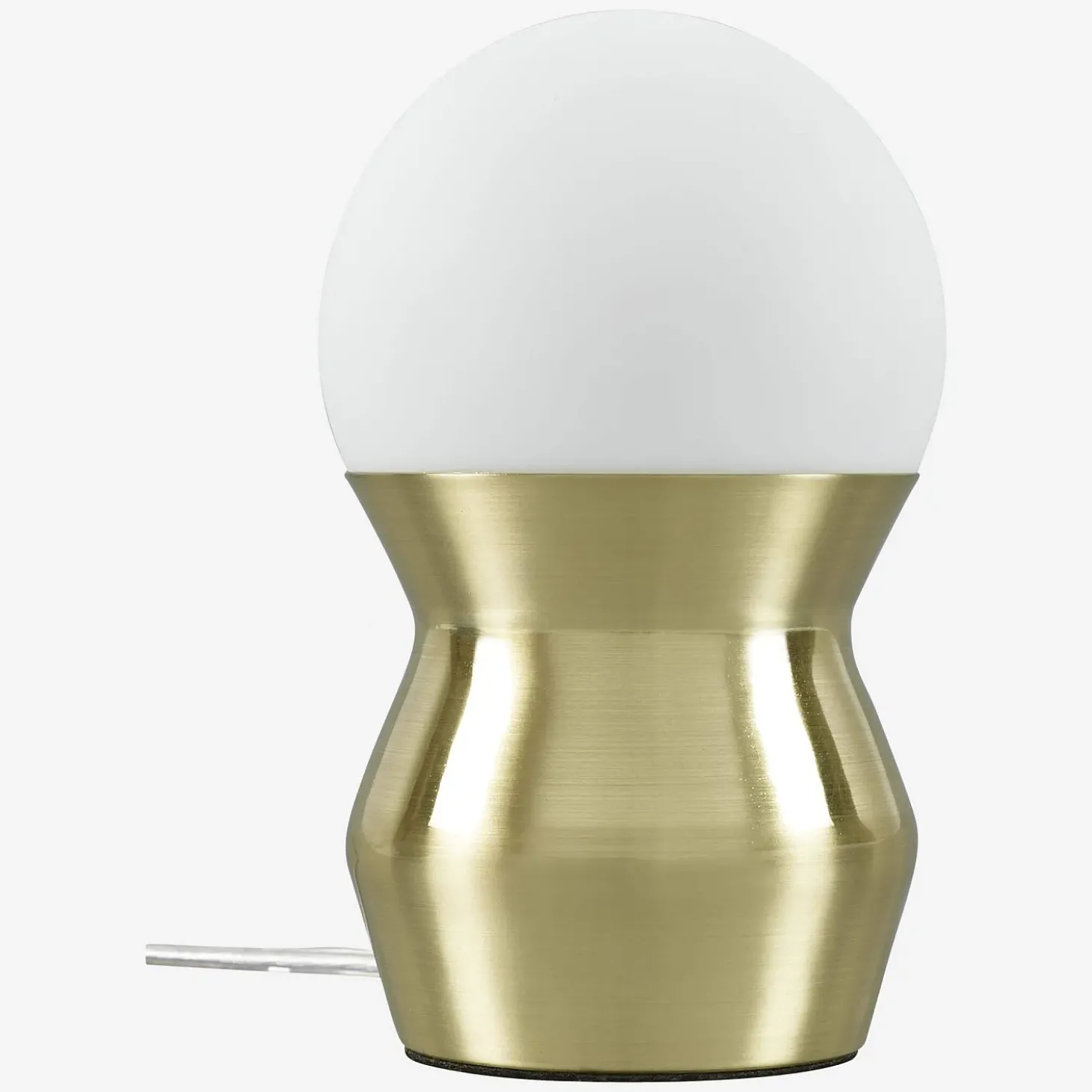 Les lignes graphiques de son socle en métal à la finition dorée contrastent avec la rondeur organique de son globe en verre parfaitement ajusté. Cette lampe de petite taille se glisse partout et diffuse une lumière douce et chaleureuse, qui n’éblouit pas.