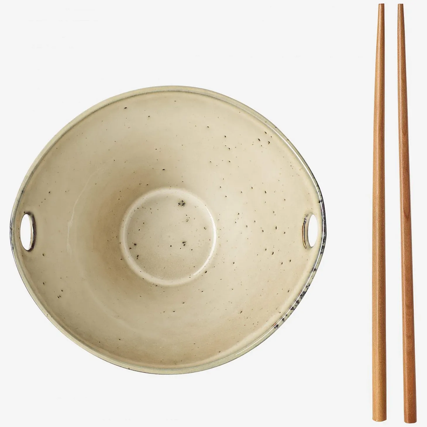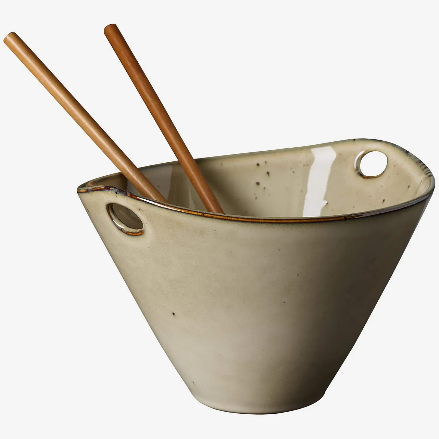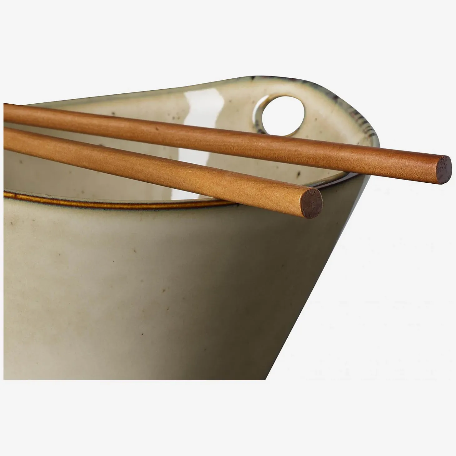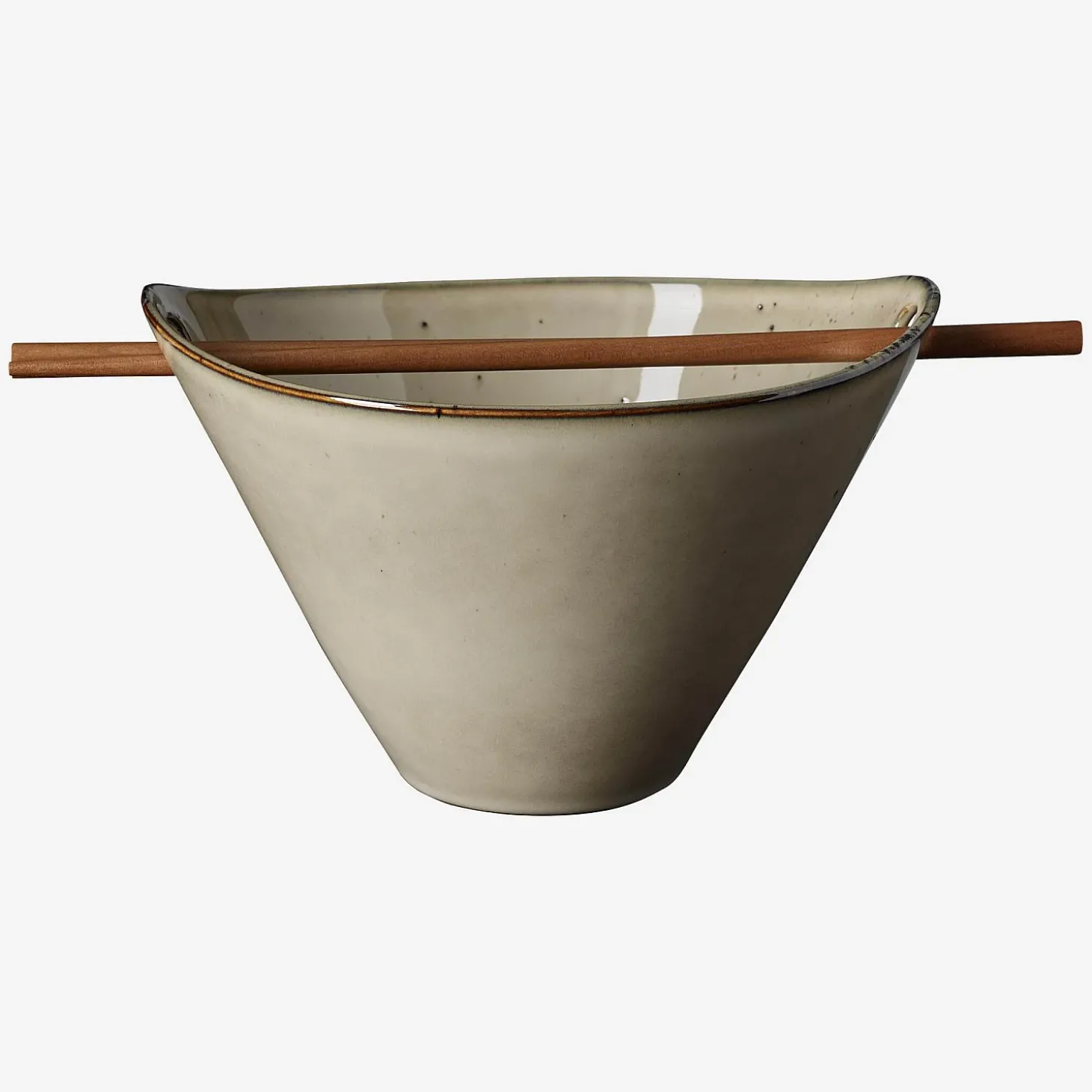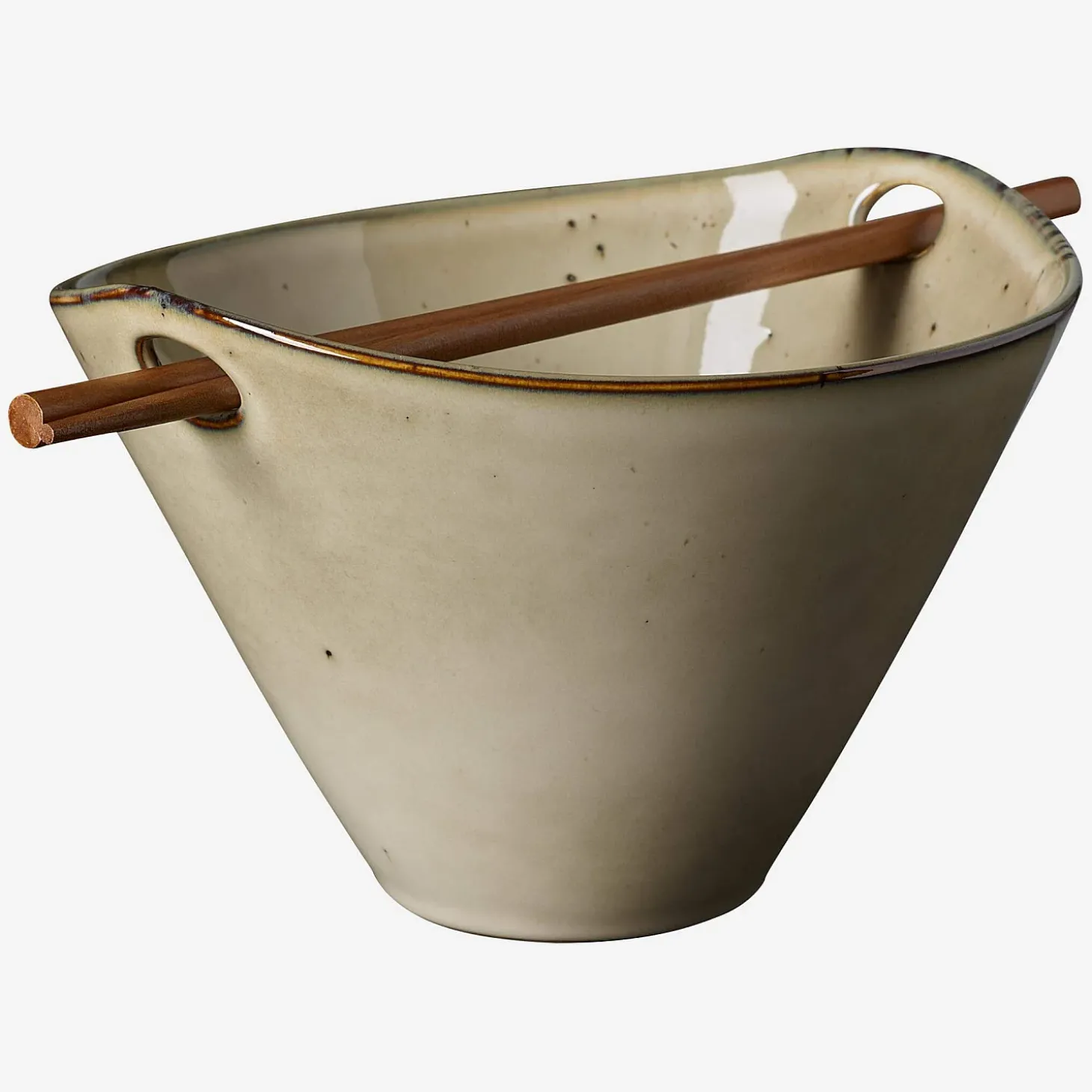 **Fabriqué en Chine**Le bol de nouilles Jersey associe design élégant et praticité, avec ses baguettes en bambou intégrées pour savourer pâtes et raviolis en toute simplicité.