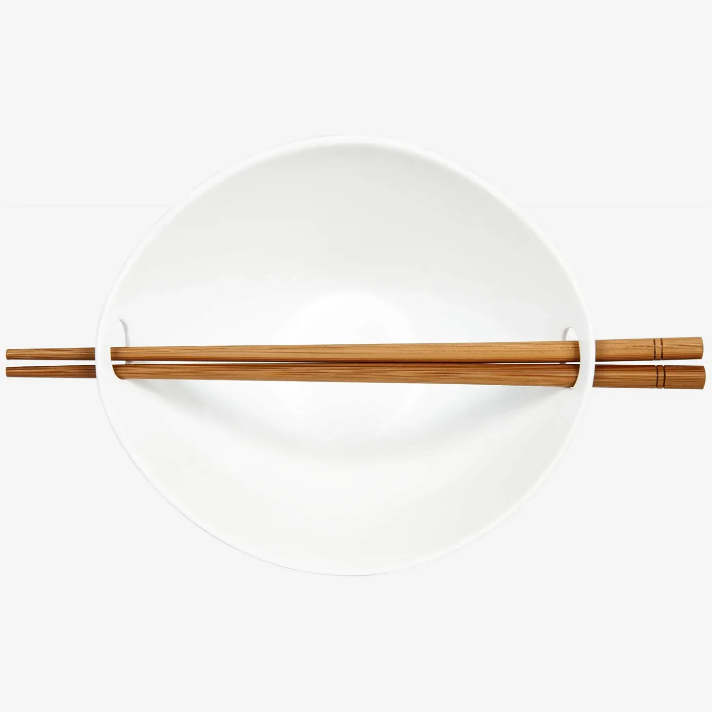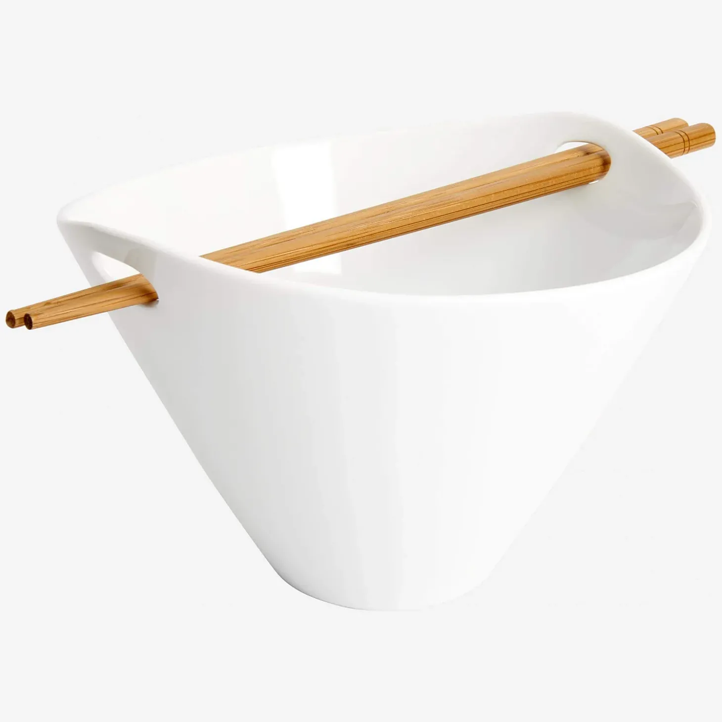 **Fabriqué en Chine**Le bol de nouilles Jersey associe design élégant et praticité, avec ses baguettes en bambou intégrées pour savourer pâtes et raviolis en toute simplicité.