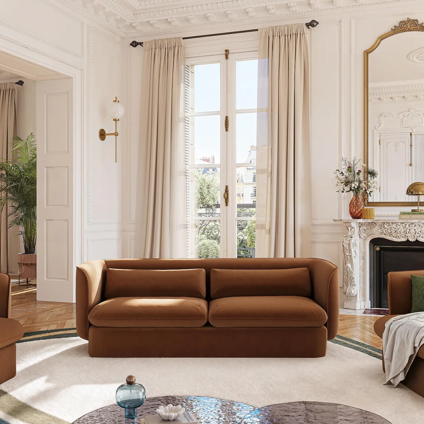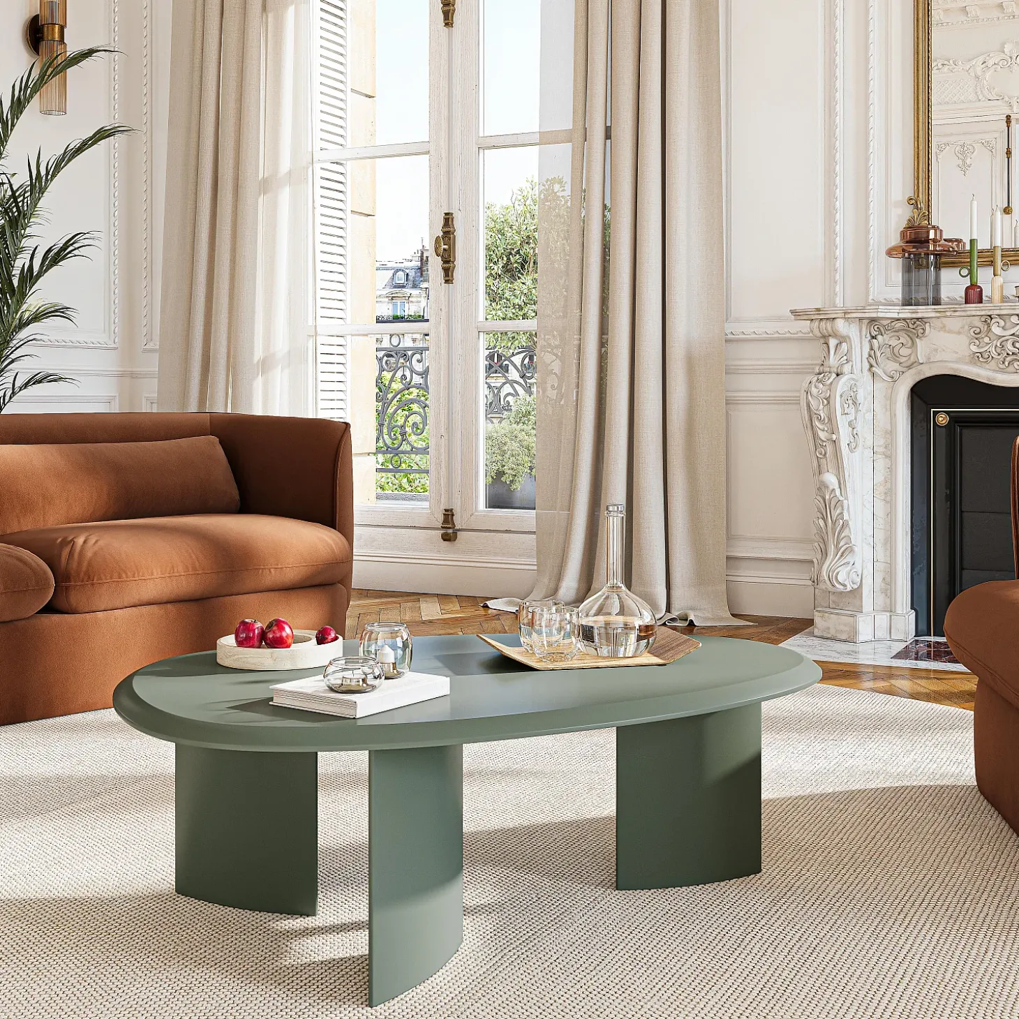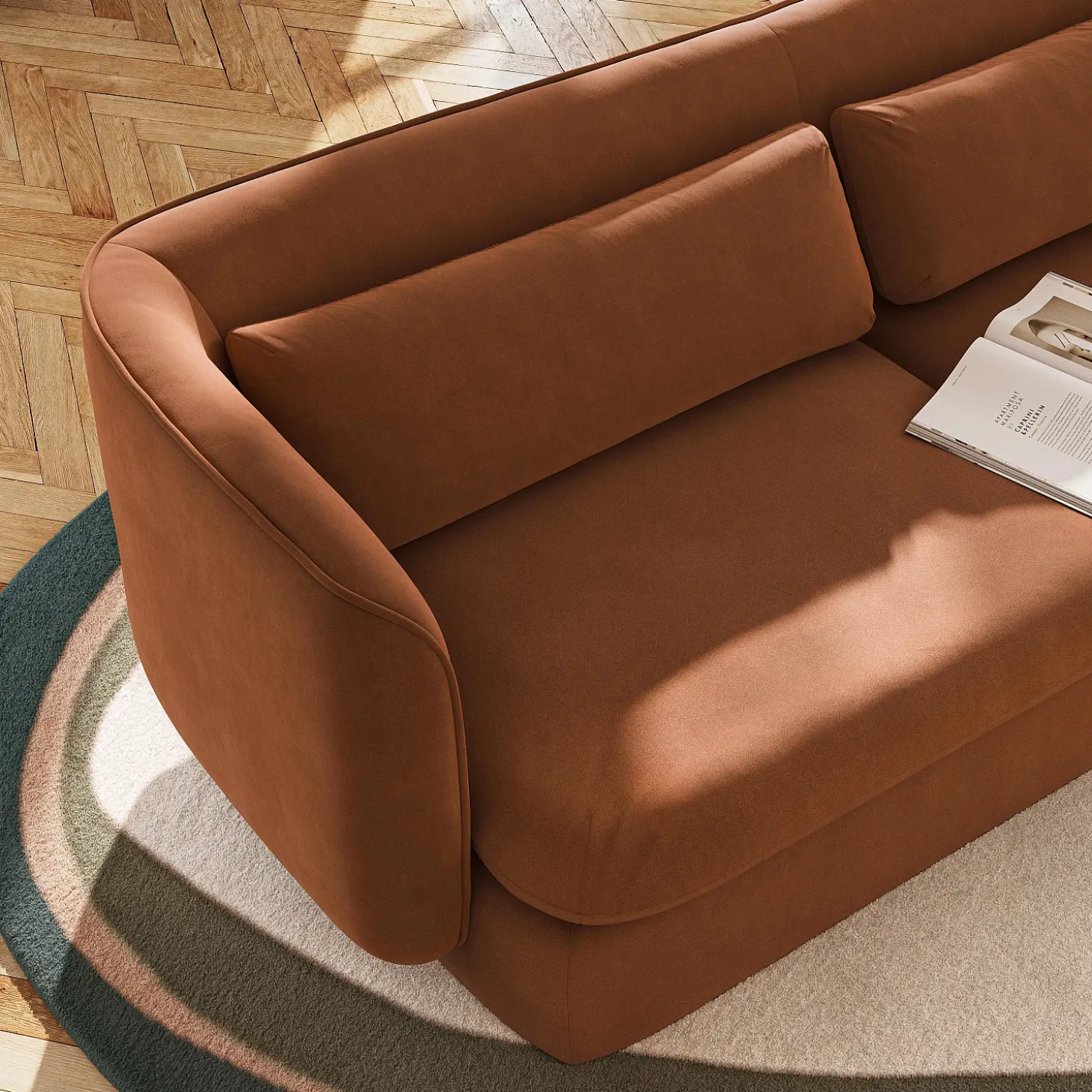La teinte terracotta, chaleureuse et profonde, réchauffe l’espace et affirme un style contemporain.
