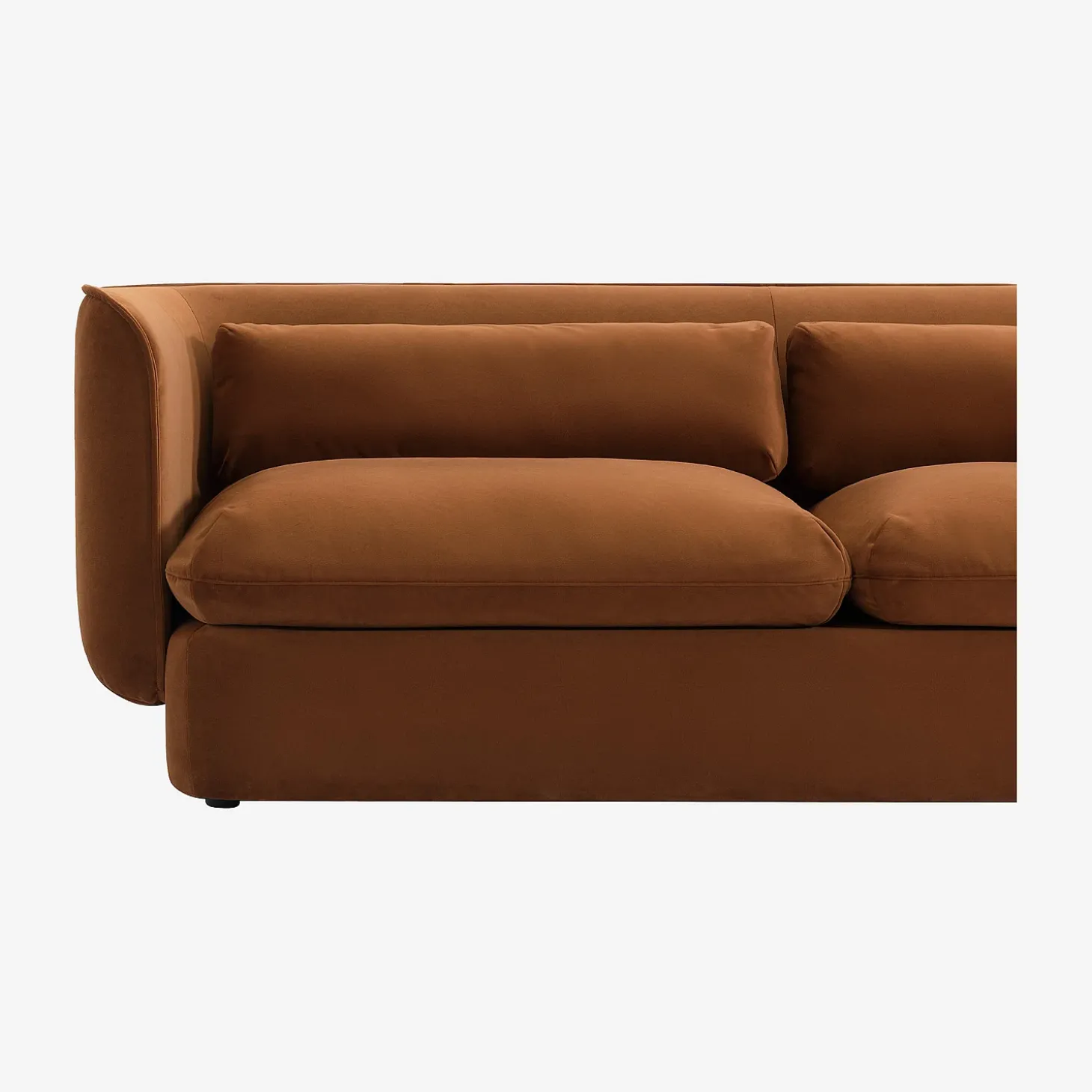 Son garnissage en plumes, complété par de la mousse haute résilience, procure une sensation enveloppante et durable. Les plumes offrent un accueil naturellement souple et aéré, tandis que la mousse assure un maintien équilibré au fil du temps. Les coussins indépendants renforcent l’agrément d’assise tout en soulignant l’esthétique du modèle.