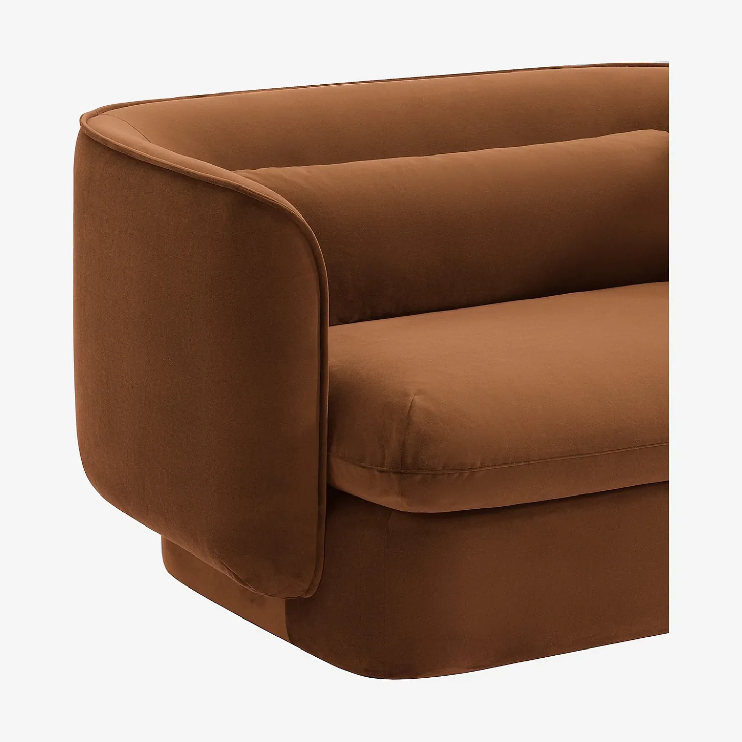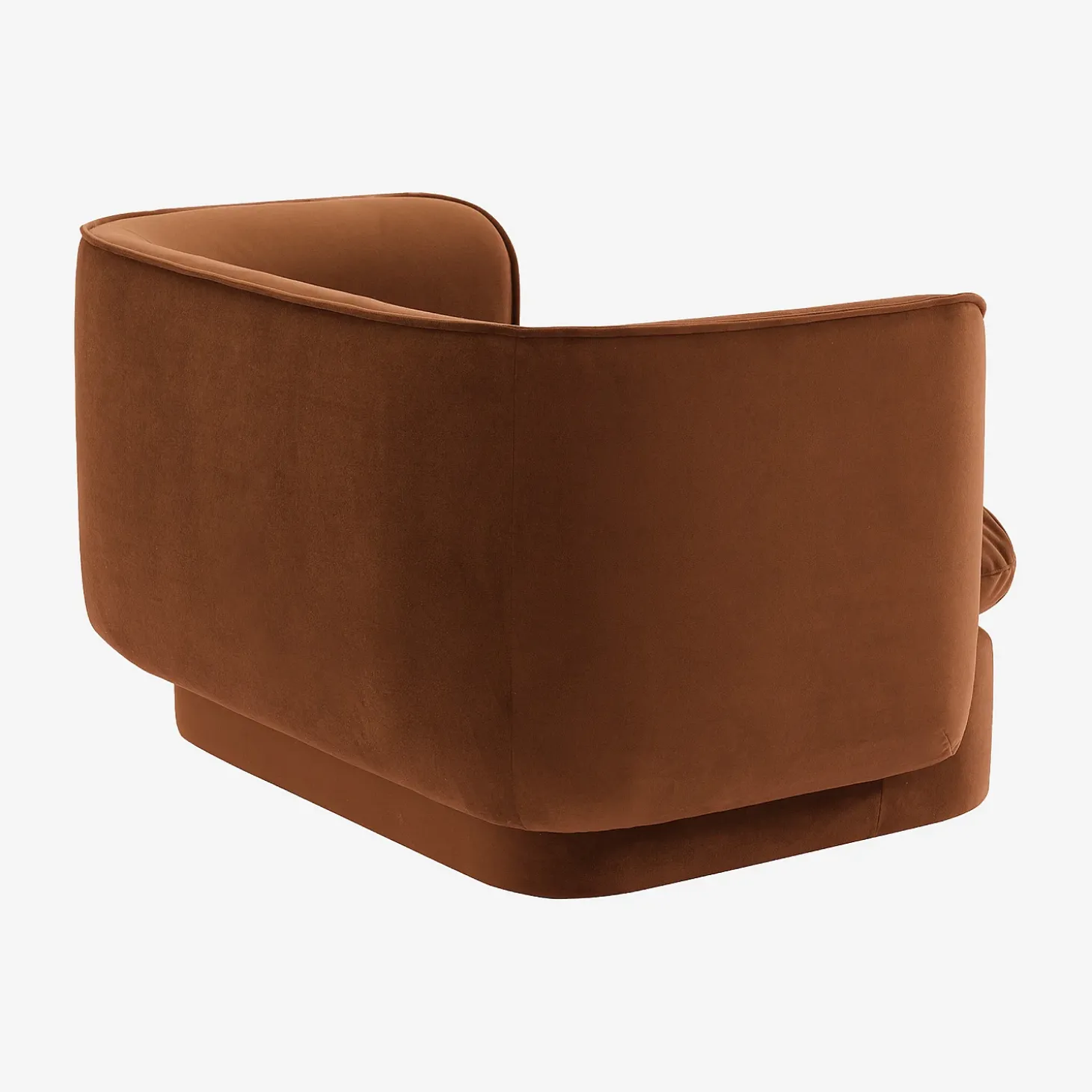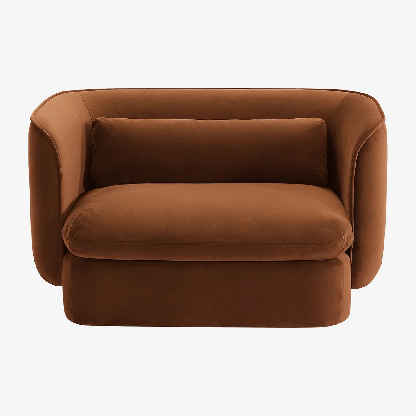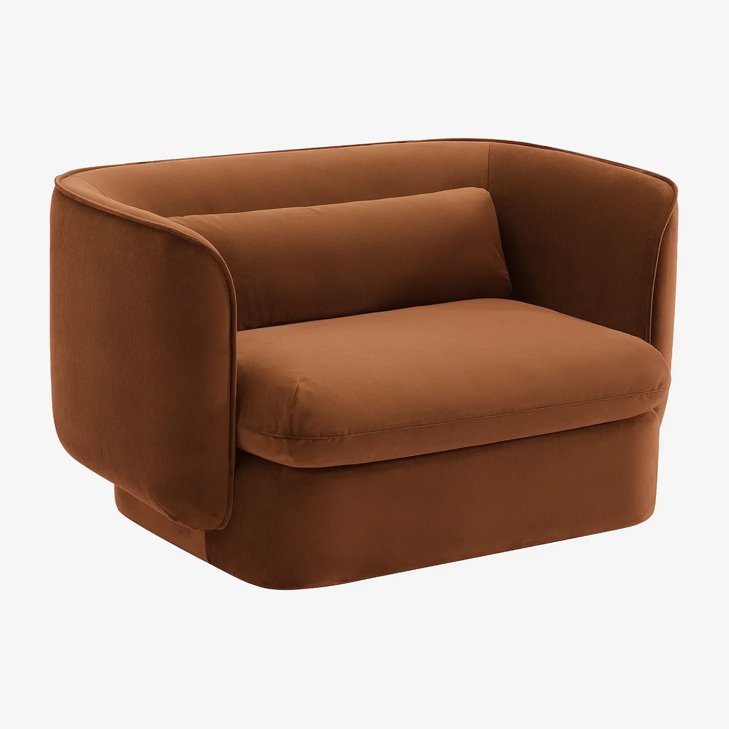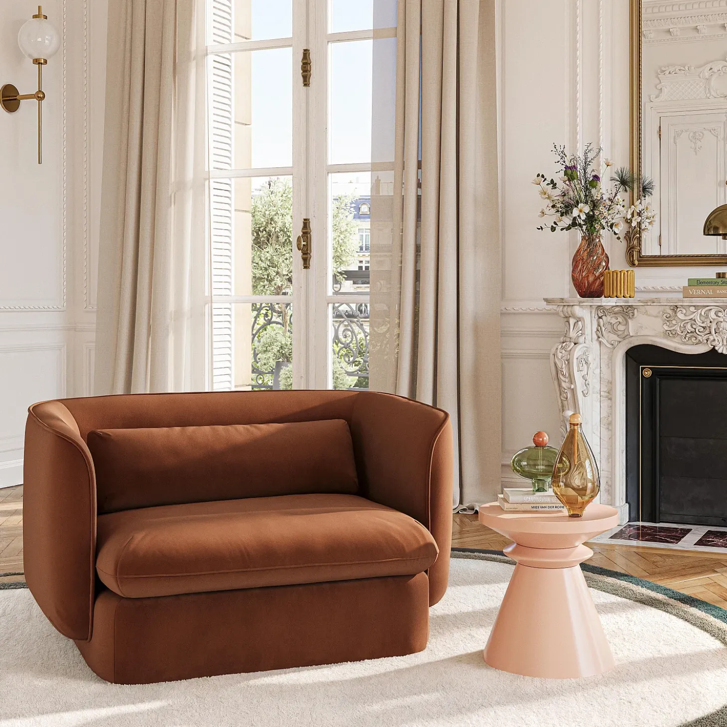 Le fauteuil Kalmia terracotta prolonge l’expérience de confort avec une assise moelleuse et accueillante.