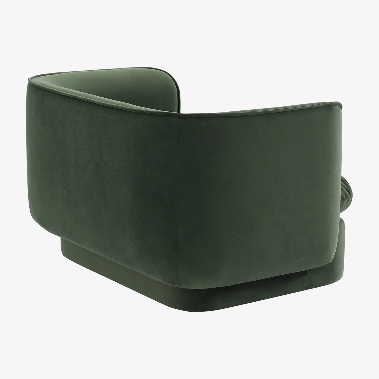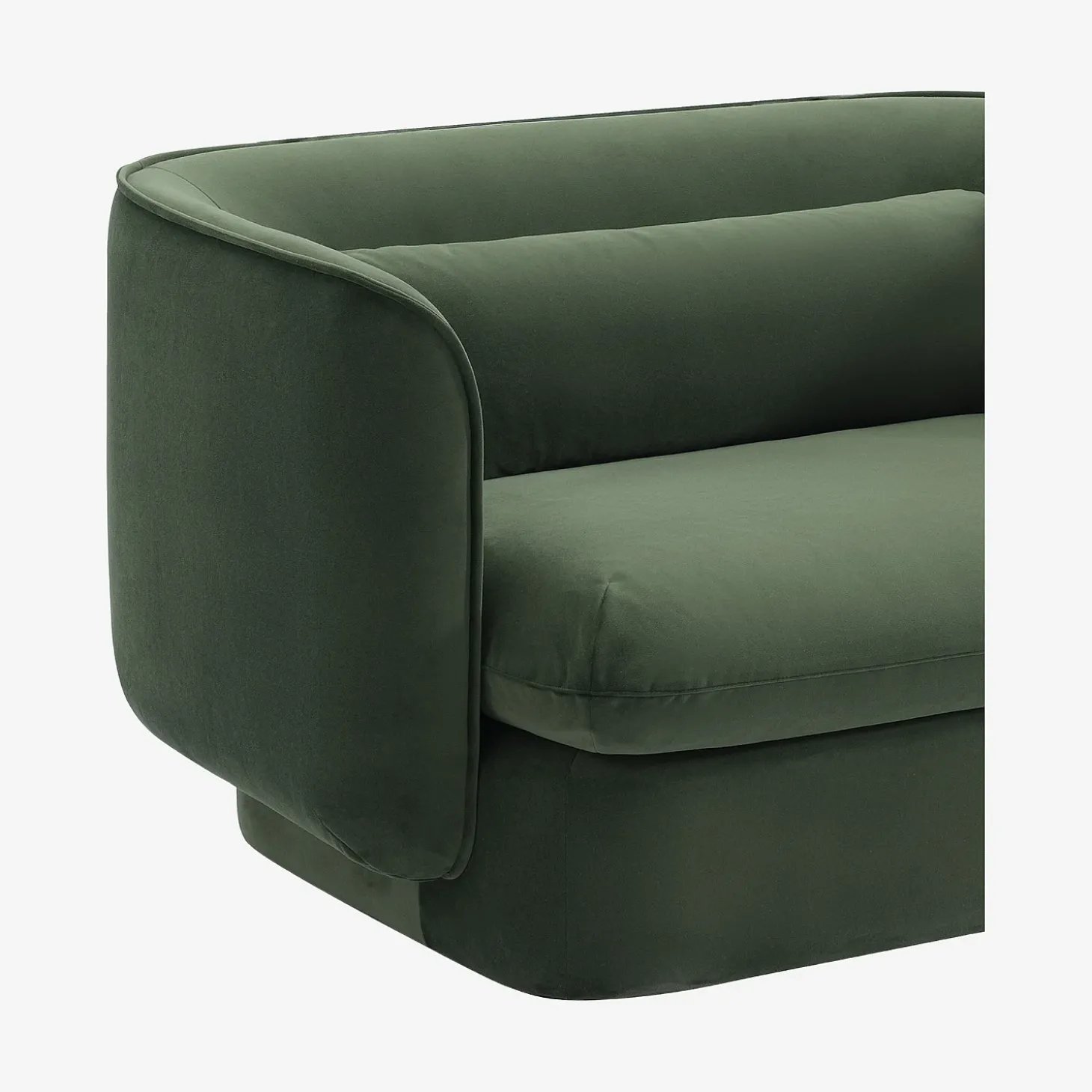 Le fauteuil Kalmia vert kaki prolonge l’expérience de confort avec une assise moelleuse et accueillante.