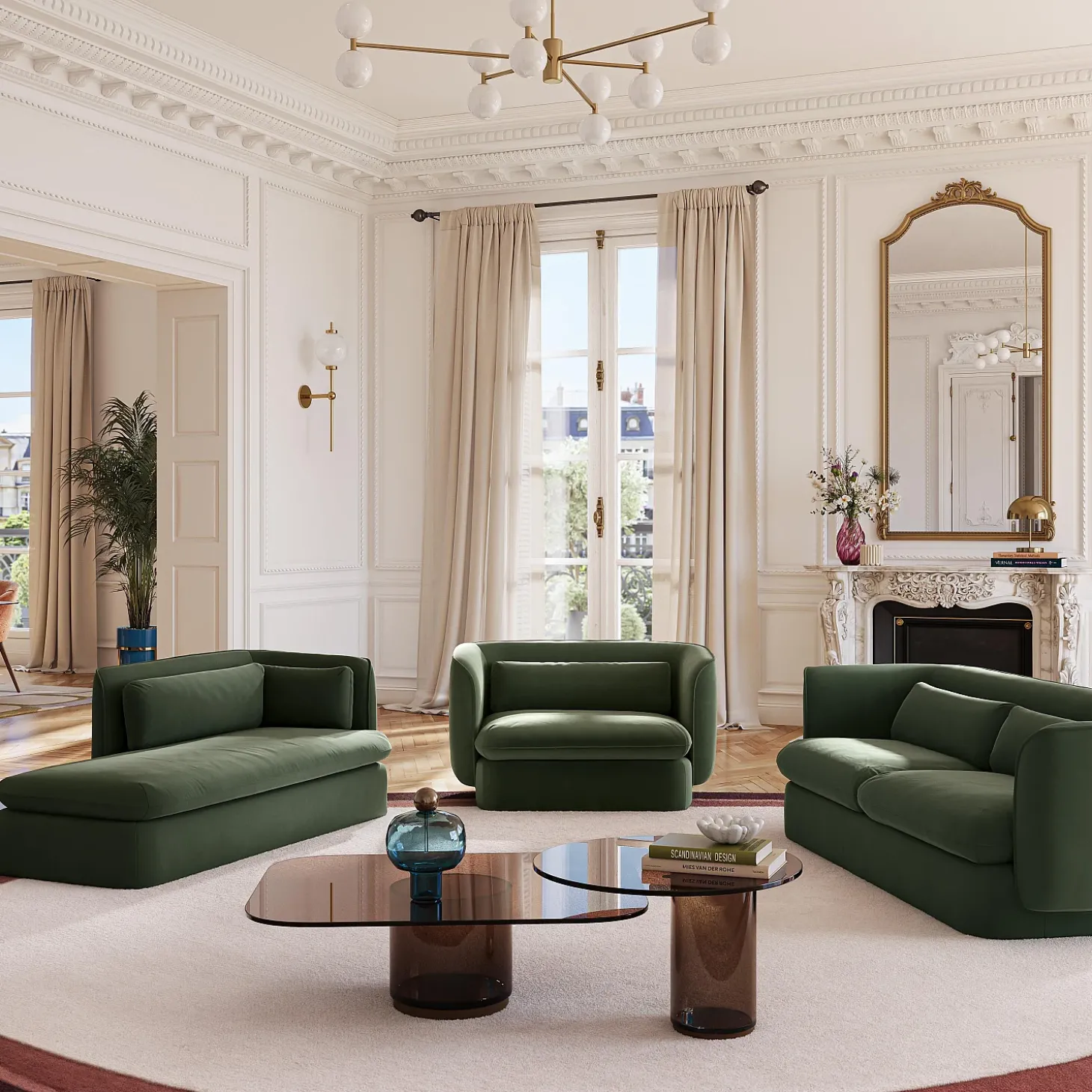 Sa teinte vert kaki, naturelle et actuelle, insuffle une atmosphère apaisante au cœur du séjour.