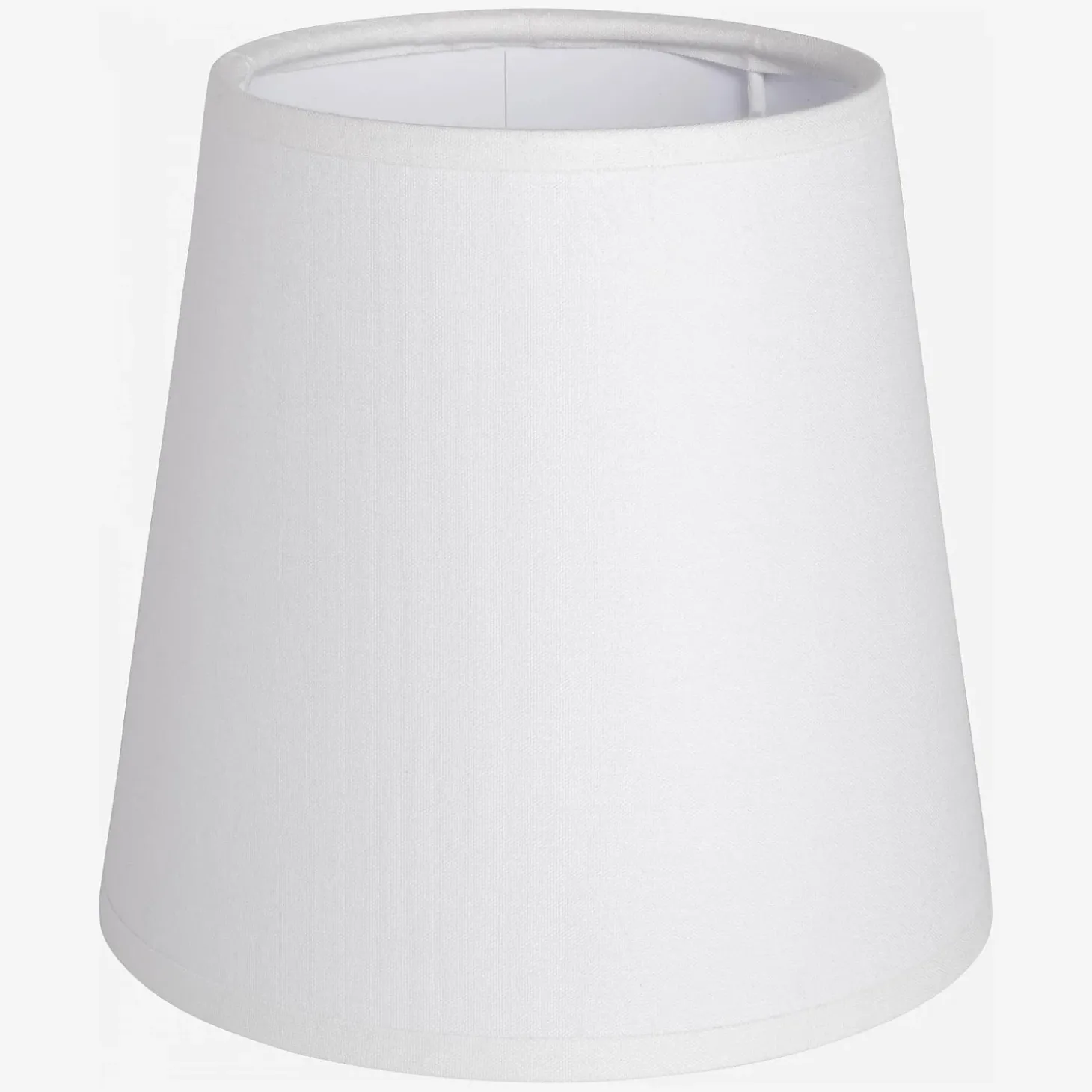 L’abat-jour fuselé Kap en coton blanc mesure 14 cm de haut. Il habille élégamment une lampe à poser.