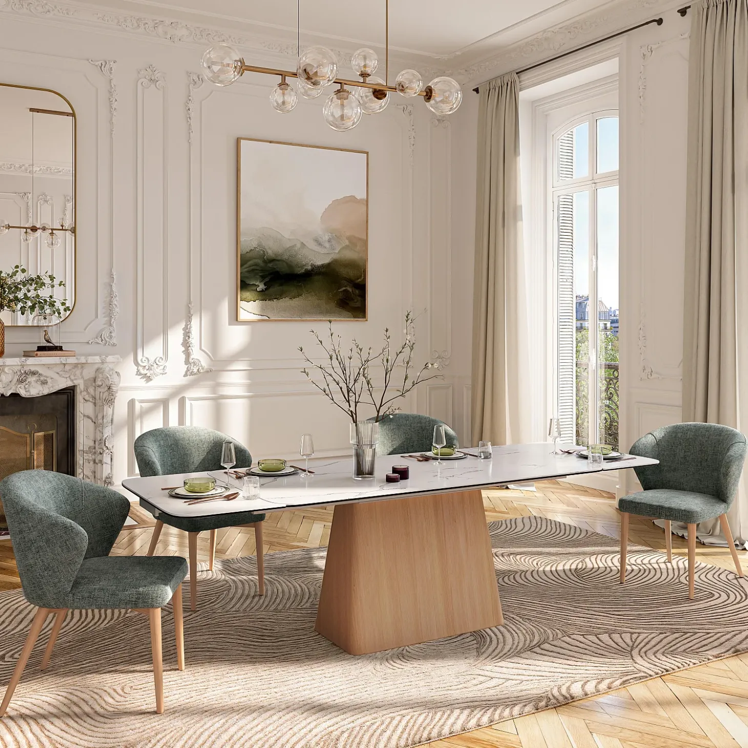 La chaise Luris incarne une élégance naturelle et robuste. Son allure intemporelle lui permet de dialoguer aussi bien avec une table contemporaine qu’un intérieur plus classique, dans une harmonie sobre et raffinée.